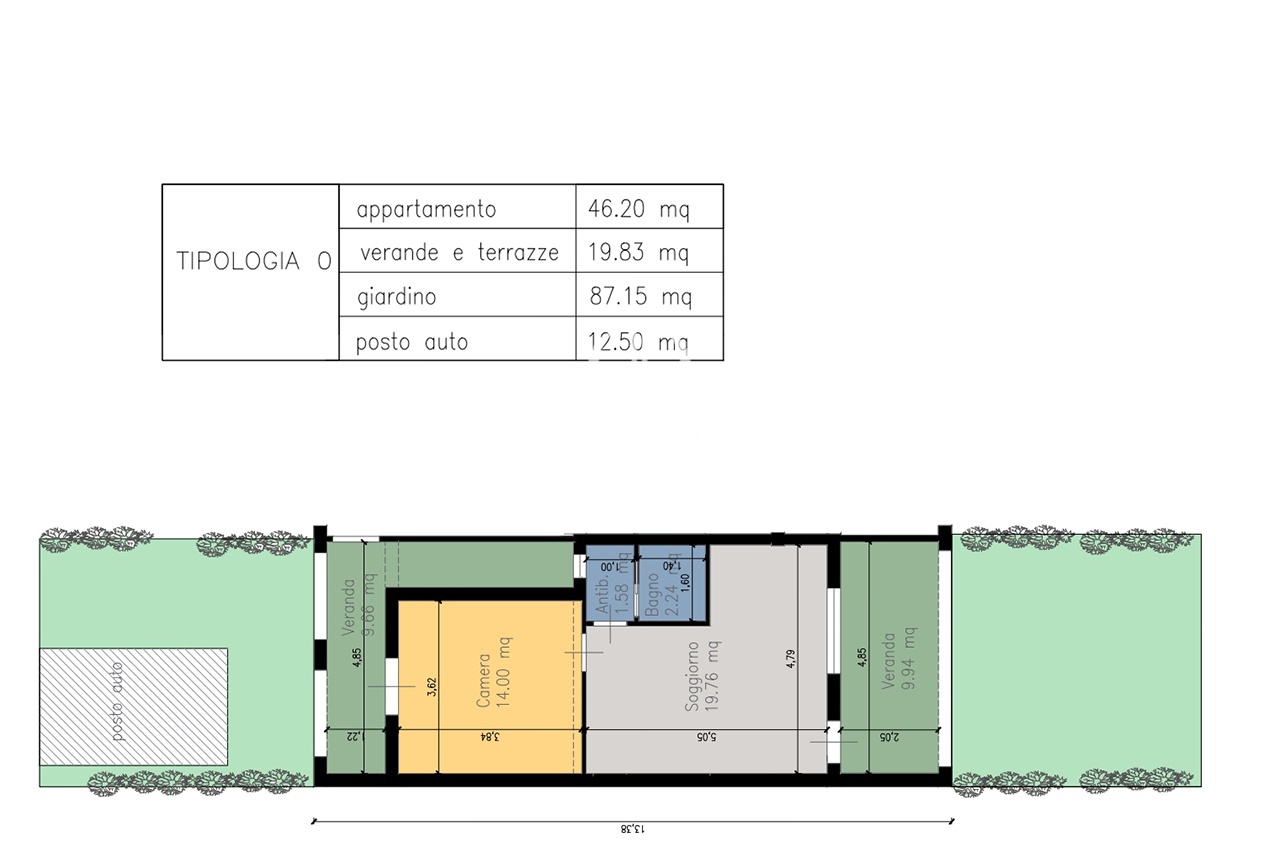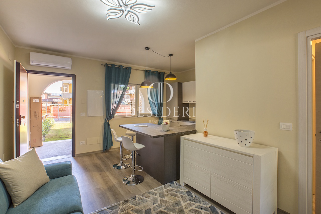 L'appartamento è posto al piano terra, con accesso da giardino privato ed è composto da cucina/soggiorno, bagno con finestra e camera matrimoniale.
