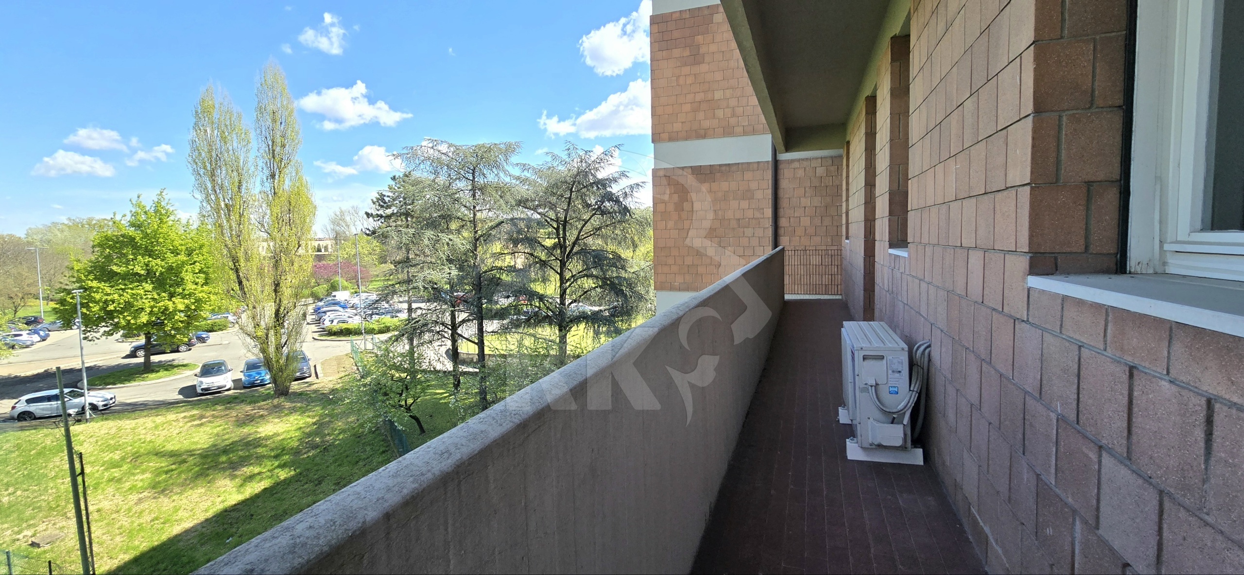 Vero punto di forza è il grande balcone che si sviluppa per tutta la larghezza dell'appartamento, offrendo un affaccio panoramico e rilassante direttamente sul verde circostante.