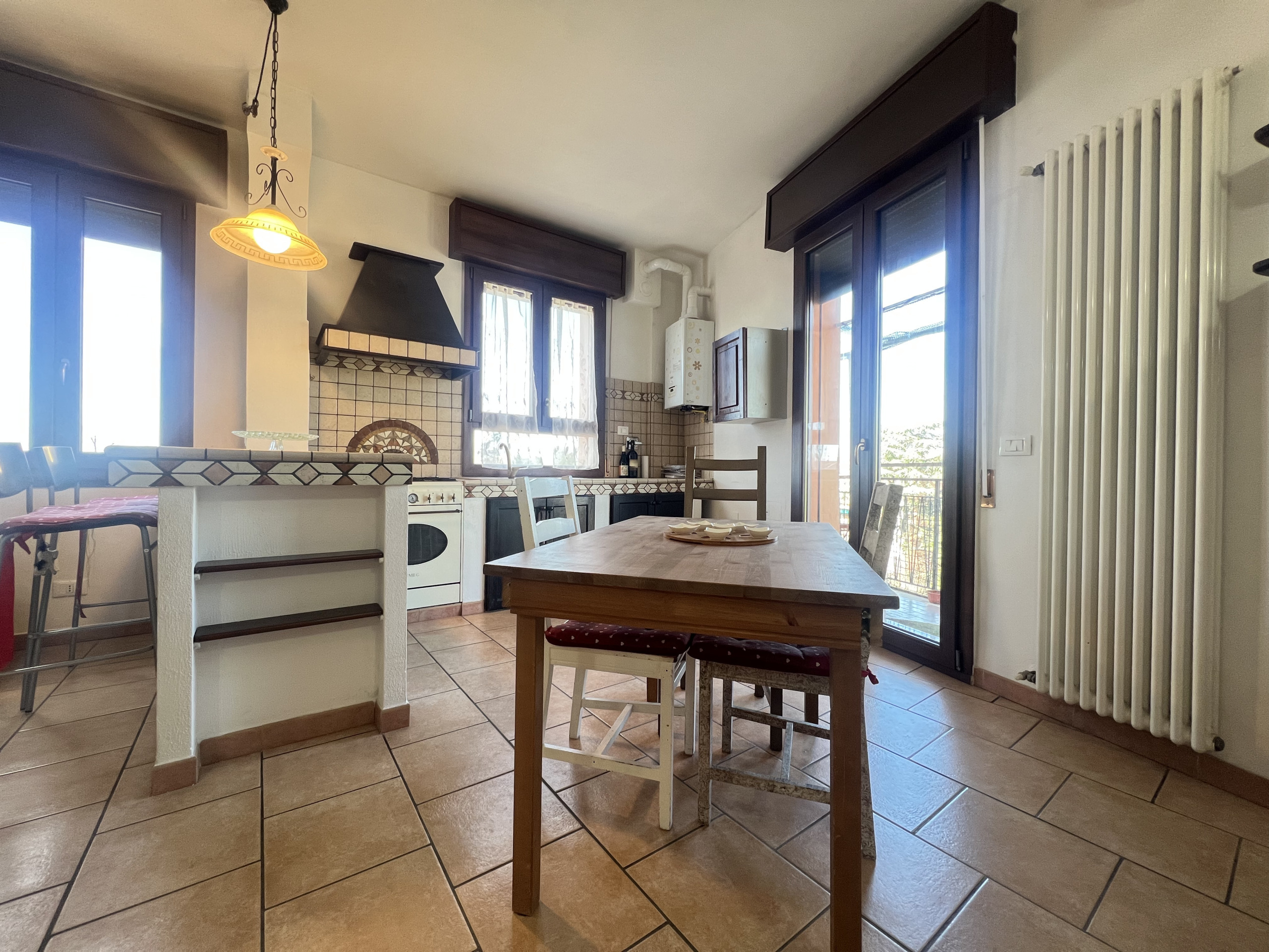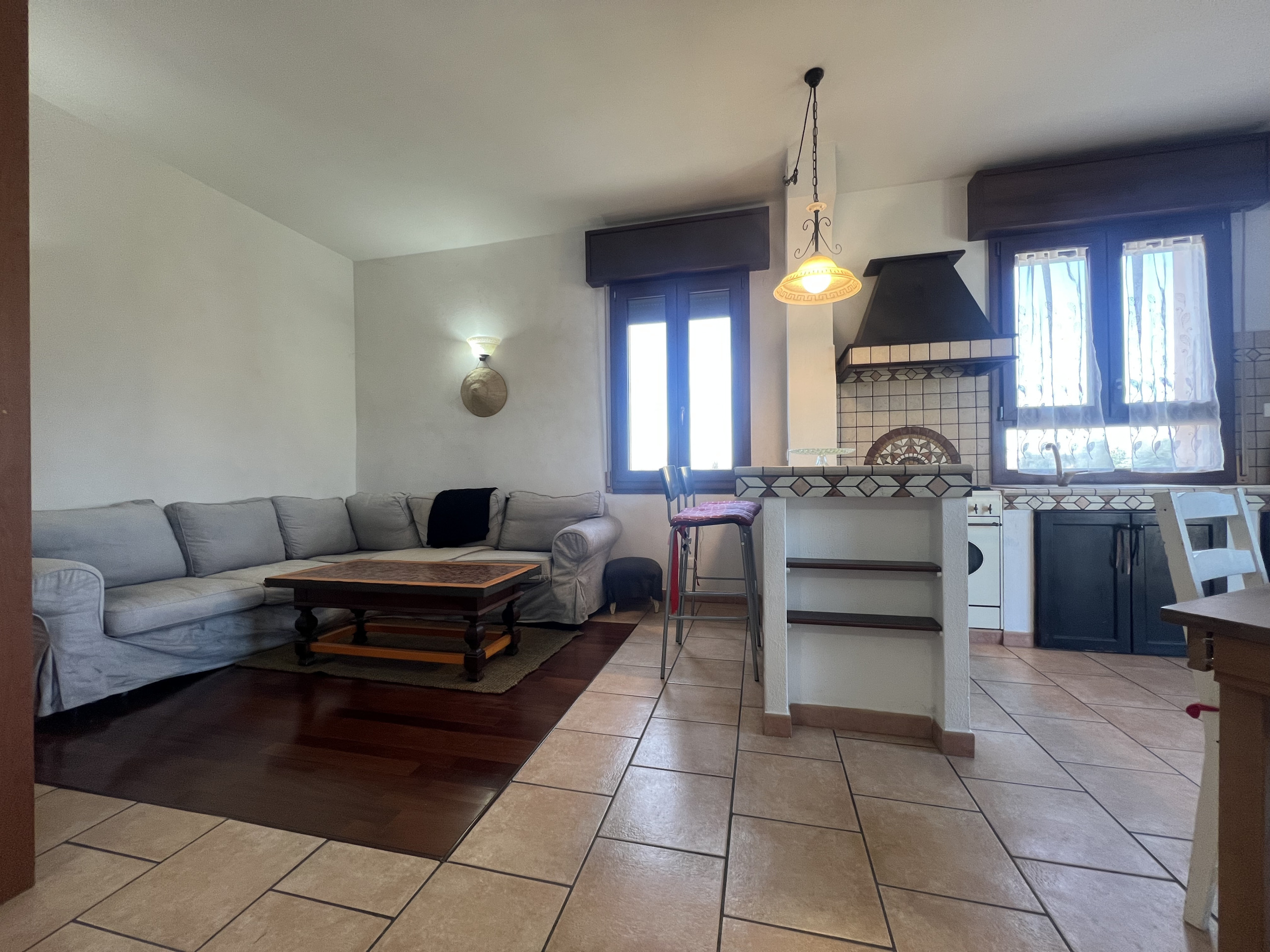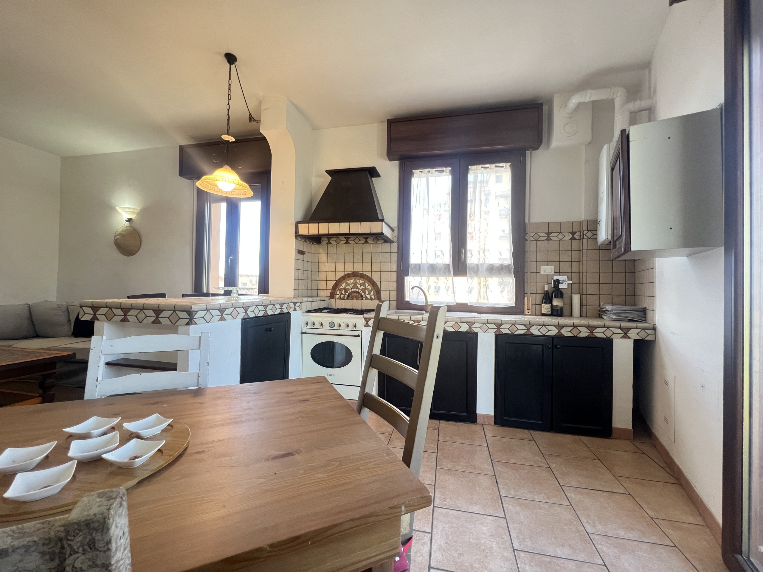 L' appartamento è composto da: ingresso su ampio soggiorno con angolo cottura in muratura e balcone, molto luminoso visto le tre finestre, disimpegno, bagno, ripostiglio e camera da letto con cabina armadio.