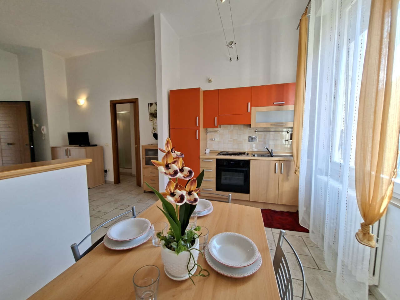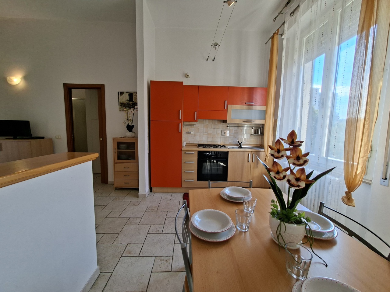 Dal terrazzo si accede ad ampio soggiorno con angolo cottura e divano letto matrimonaile, ampia camera matrimoniale e bagno con doccia finestrato.