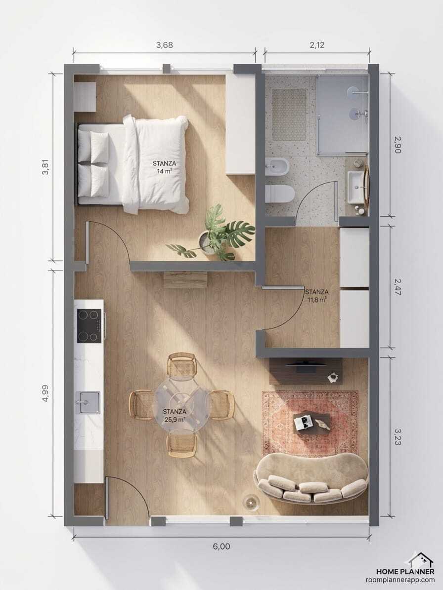 Lipotesi progettuale, già sviluppata e visibile attraverso render dedicati, valorizza ogni metro quadrato dellimmobile, prevedendo una spaziosa camera matrimoniale di circa 15 mq, pensata per garantire comfort e vivibilità, un bagno di ben 11 mq dalle dimensioni generose e facilmente personalizzabile, e una luminosa zona giorno open space con cucina e soggiorno, progettata per diventare il cuore della casa, uno spazio accogliente e conviviale.