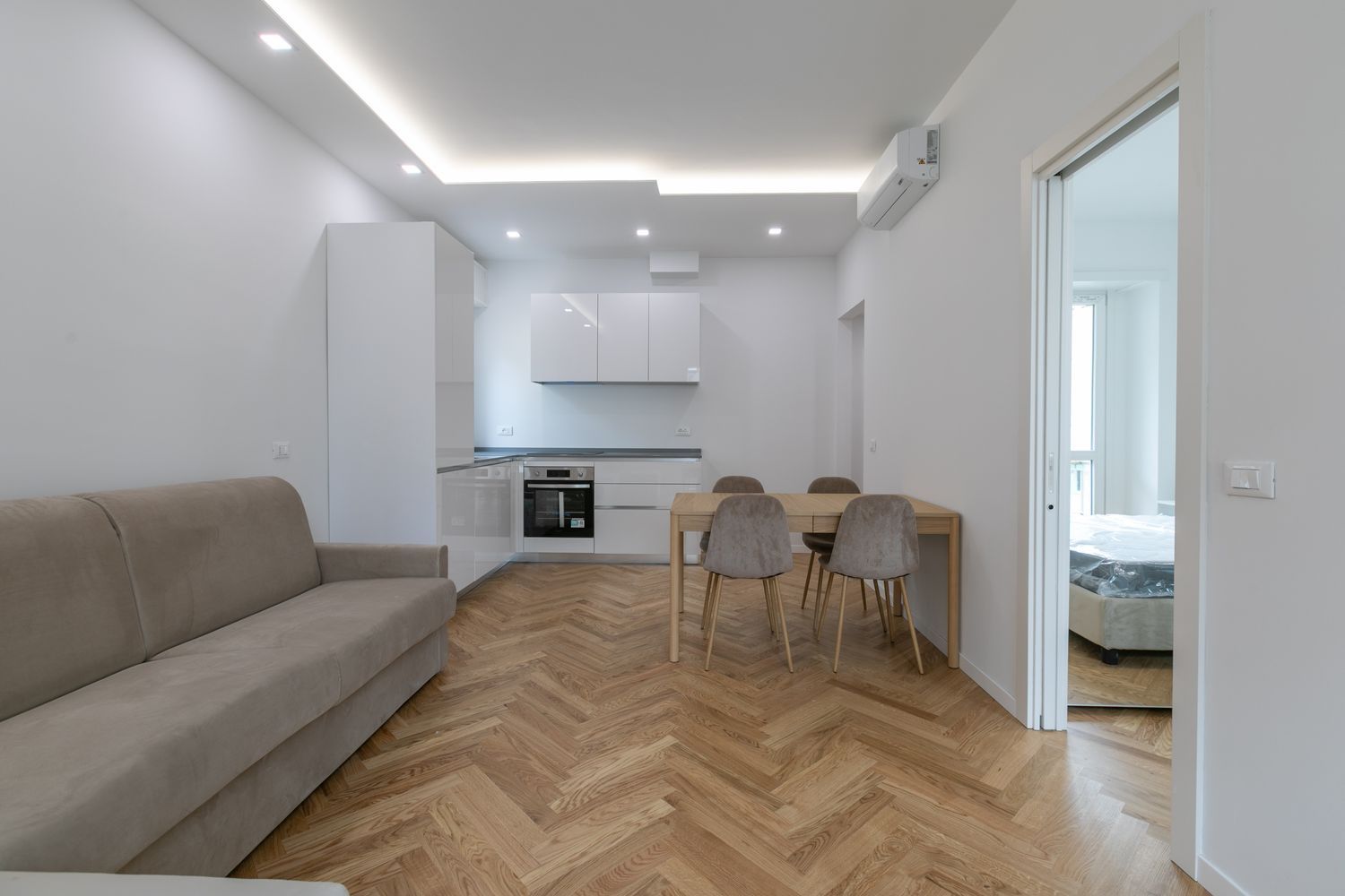 Via Montepulciano 2: In posizione strategica tra MM1 Loreto e MM2 Centrale, in un palazzo signorile degli anni '60, elegante e ben tenuto, dotato di servizio di portineria tutto il giorno e ascensore, proponiamo in vendita quattro bilocali di NUOVA REALIZZAZIONE situati al primo ***.*******.** bilocale, con superficie a partire da 43 mq, è consegnato completamente arredato e dotato di ogni comfort:-Soggiorno con cucina a vista, completa di elettrodomestici, divano e tavolo con sedie-Camera matrimoniale con letto e armadiature su misura-Bagno arredato con finiture di pregio-Aria condizionata-Ampie balconateInfissi nuovi, materiali di alta qualità e design contemporaneo.