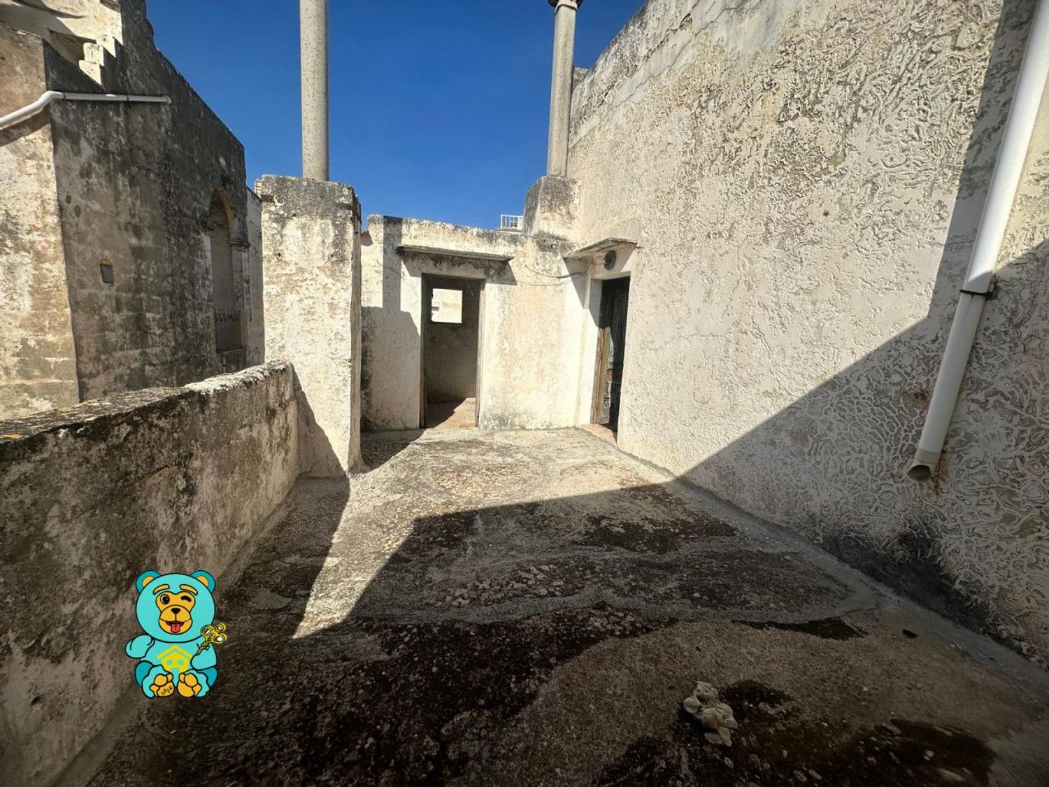 Al piano terra, entrando in un cortile comune, troviamo una stanza di 22 mq circa con volta a stella e camino; salendo da una scala esterna in pietra, troviamo altri due ambienti di 33 mq circa con terrazzo a livello, vista mare e area solare di proprietà. Situato nella meravigliosa zona centrale di Matino, troverete tutto ciò che vi serve a pochi passi: boutique locali, caffè caratteristici ed ottimi ristoranti che servono piatti tipici pugliesi.