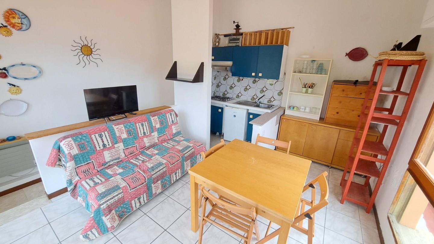 Una comoda scala interna conduce al piano superiore dove troviamo un ampio e luminosissimo Soggiorno con con Vista Mare Unica attraverso le grandi superfici vetrate dominante sulla Baia del Quercetano e un Angolo Cottura.