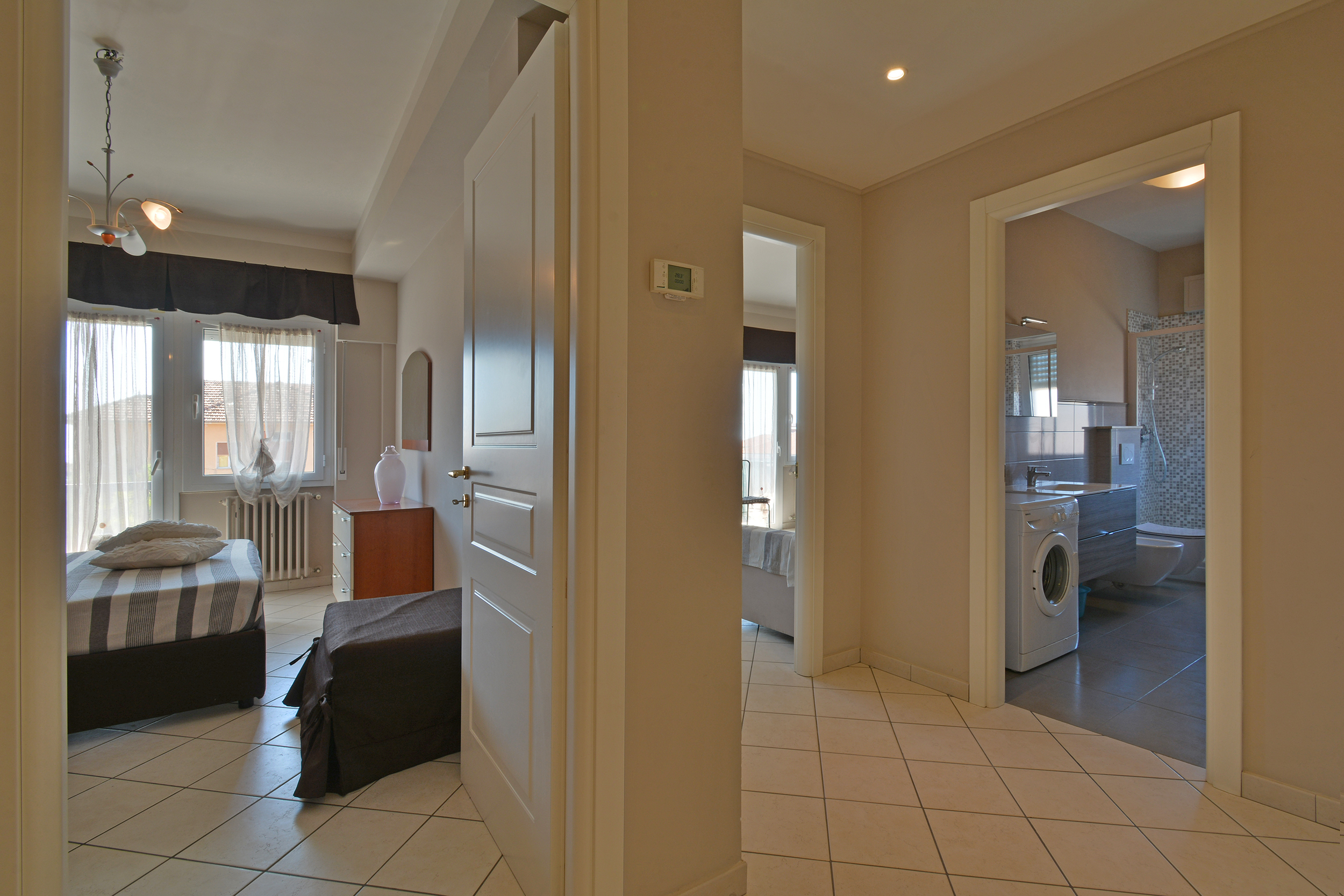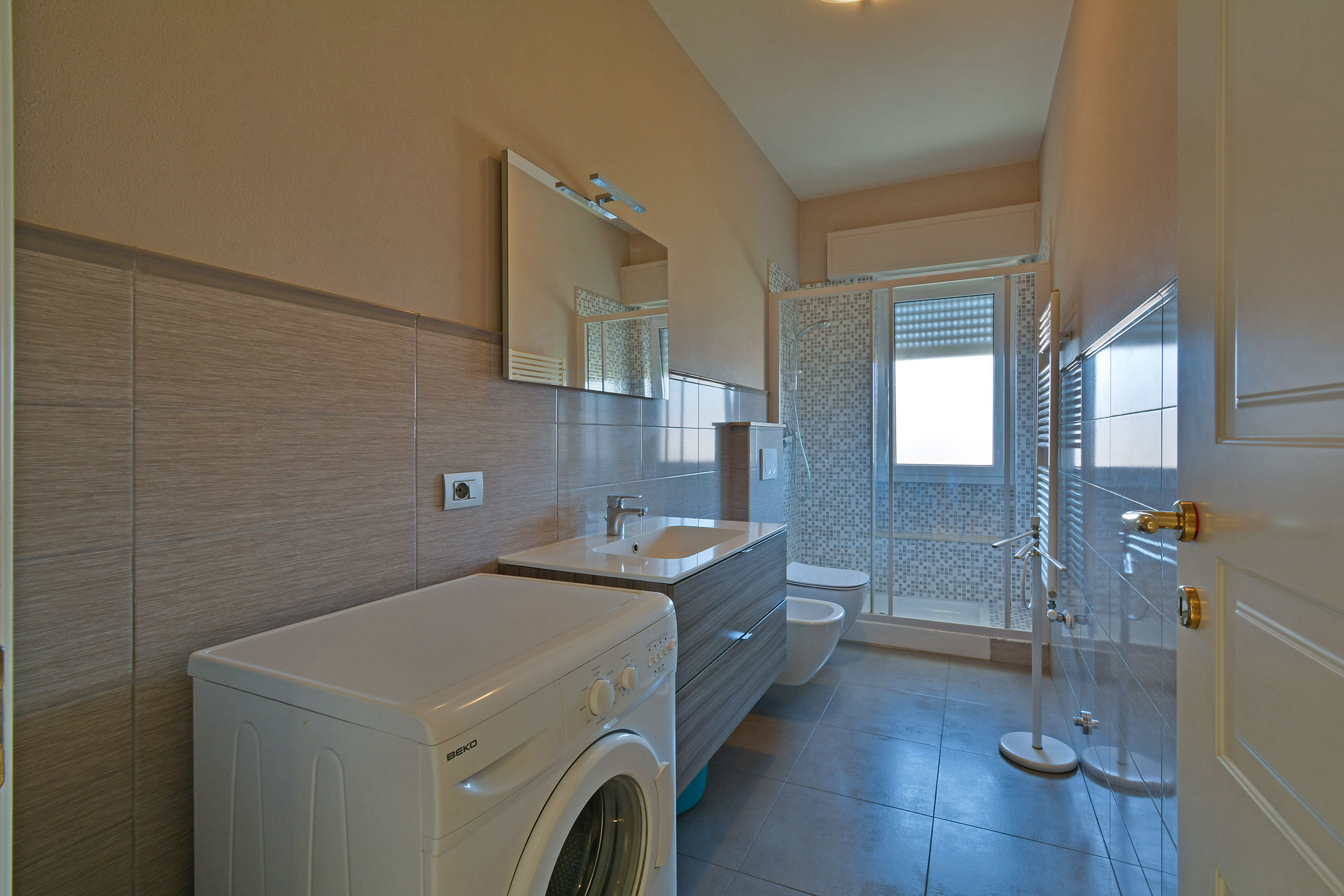 San Bartolomeo al Mare Bilocale al piano attico ultimo piano con ascensore ottima esposizione a sud ovest terrazzo vivibile per mangiare fuori più balcone composto da ingresso disimpegno con armadio a muro, camera da letto matrimoniale con apertura sul terrazzo soggiorno doppio con angolo cottura e doppia apertura sul terrazzo con vista mare bagno con doccia arredato a nuovo con 5 posti letto, POSTO AUTO IN CORTILE CHIUSO CANTINA AL PIANO SEMINTERRATO.