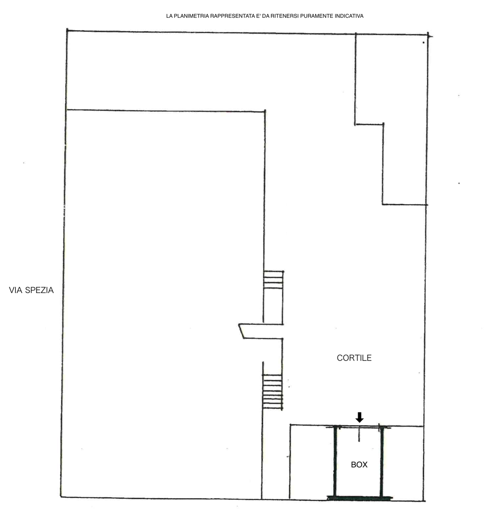 VIA SPEZIA, 39: In zona servitissima dai principali servizi quotidiani, a 5 minuti a piedi dalle fermate delle metropolitane linea verde Romolo e Famagosta; proponiamo in stabile dotato di servizio ascensore, BOX AUTO di mq 12 catastali (2,10 m x 4,10 m lunghezza, altezza porta 1,68 m e altezza interna 2,18 m) posto al piano terra.