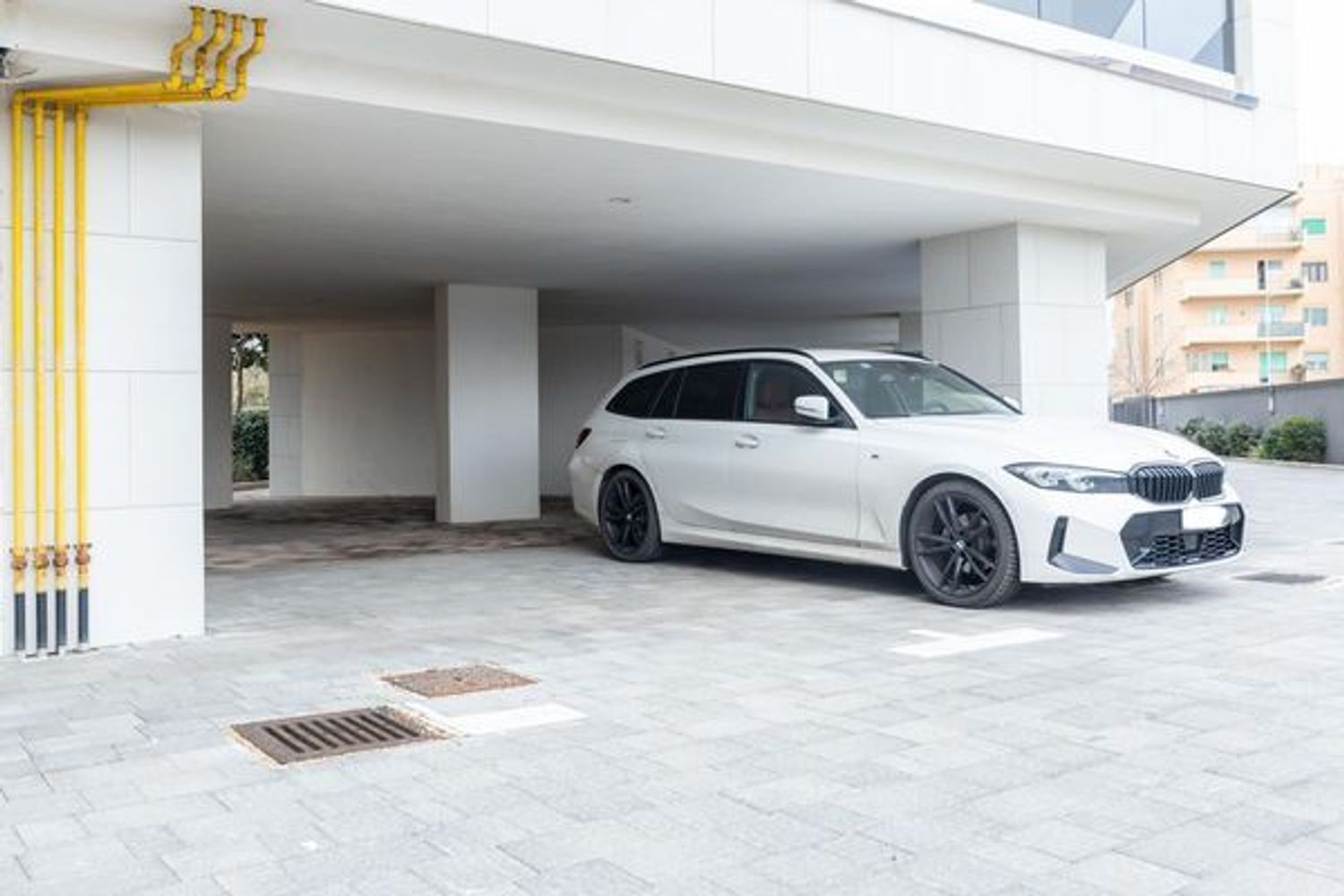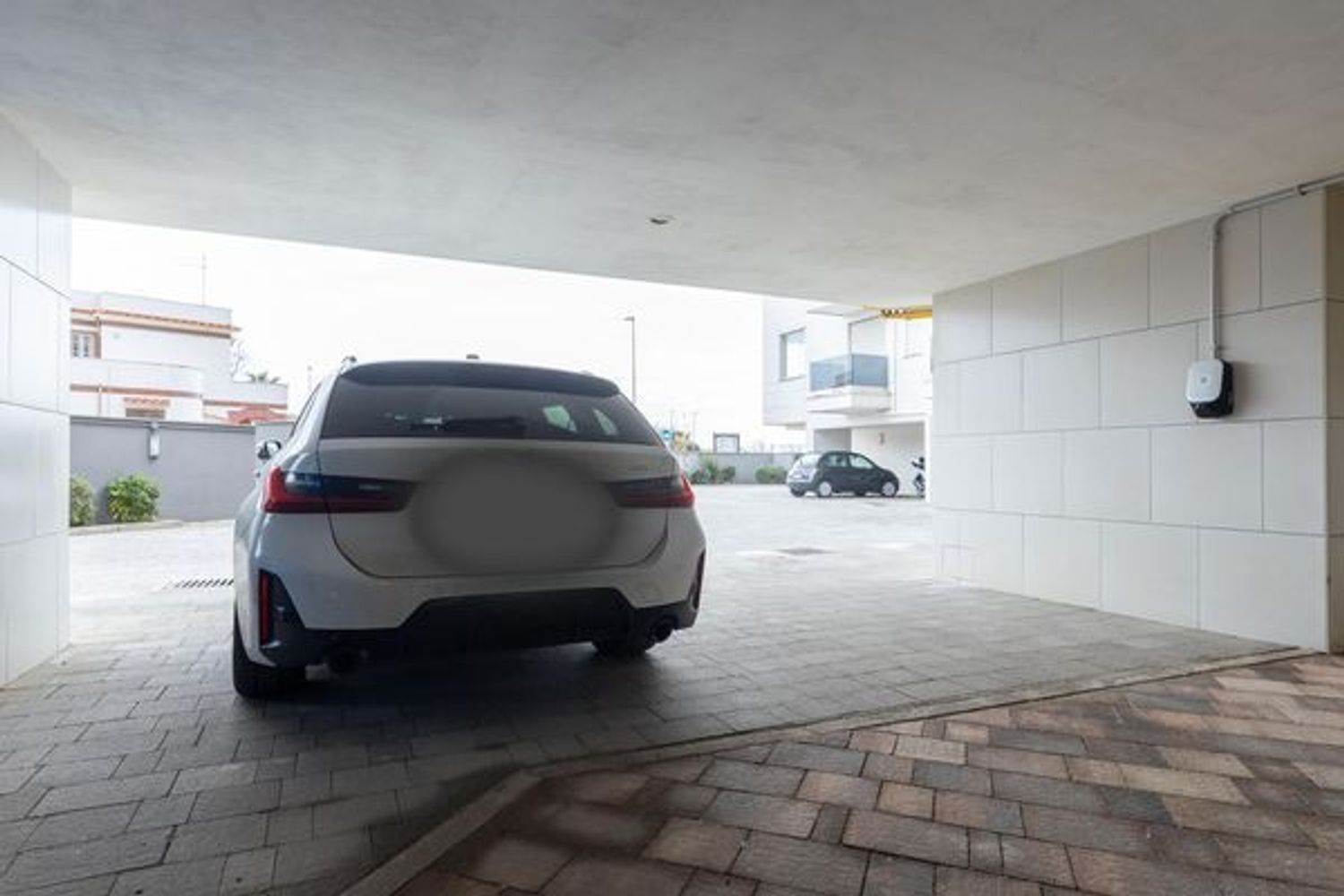 Situato sotto i portici della palazzina, questo posto auto semi coperto offre una protezione aggiuntiva dalle intemperie.