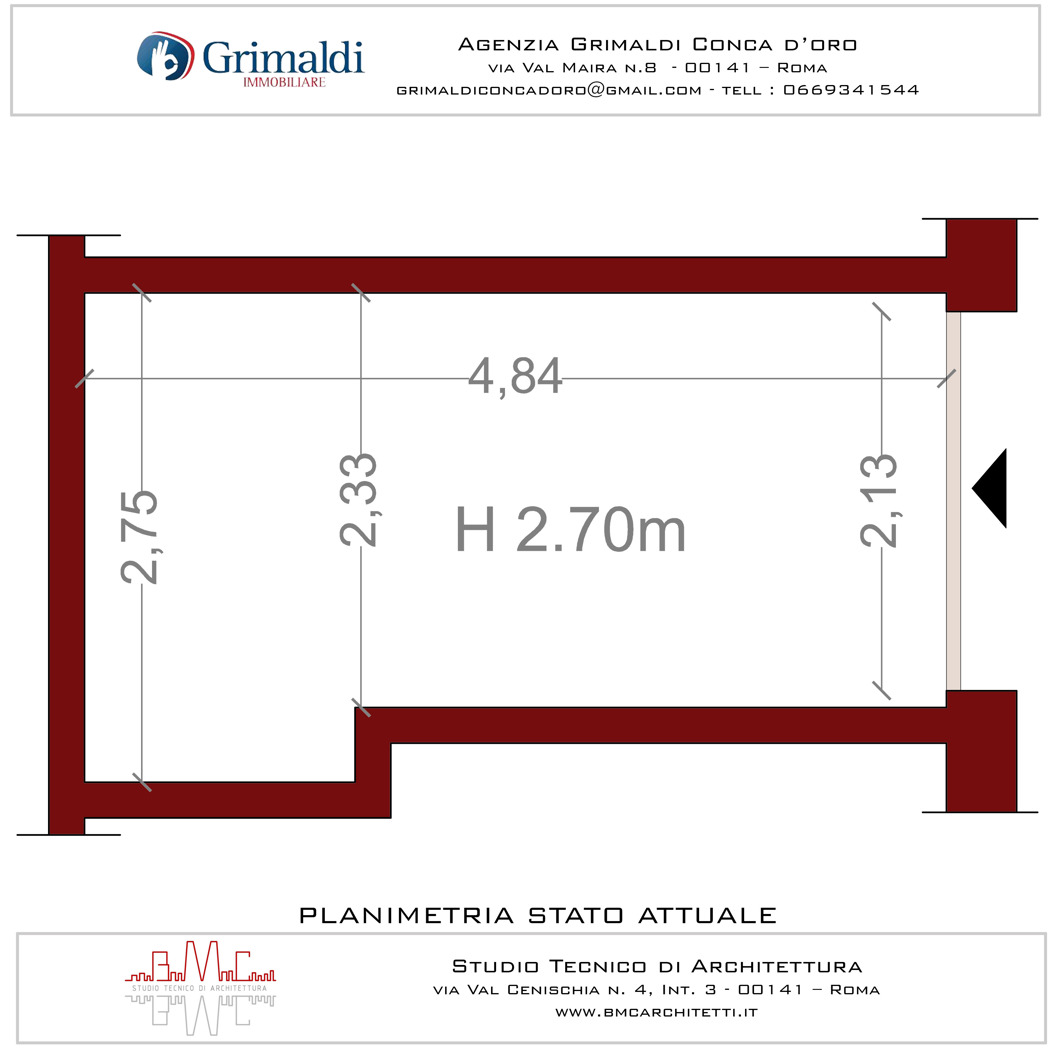 Si tratta di un box di 17 mq con profondit di 4.80 m e largo 2.33 m. Sul fondo il box si allarga a 2.75 m con la possibilit inserire un mobile con scaffalatura.