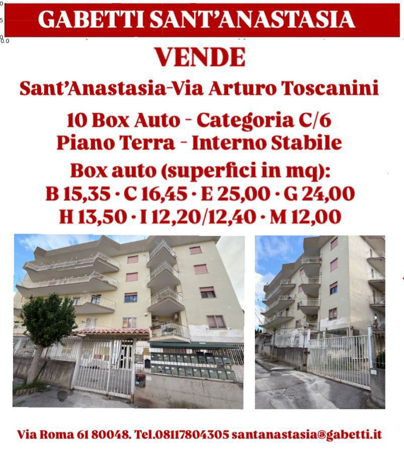 10 Box Auto- Categoria C/6- Piano Terra- Interno Stabile Box Auto Disponibili: Box B 15,35 mq Box C 16,45 mq Box H 13,50 mq Box I 12,20 mq Box I (variante) 12,40 mq Box M 12,00 mq Box G 24,00 mq Box E 25,00 mq Nelle vicinanze: -ED Enzo d'Alessandro(parrucchiere) -Peccati Di Gola (pizzeria) -Store Iaforte (alimentari) TRATTATIVA RISERVATA Contatta l'inserzionista