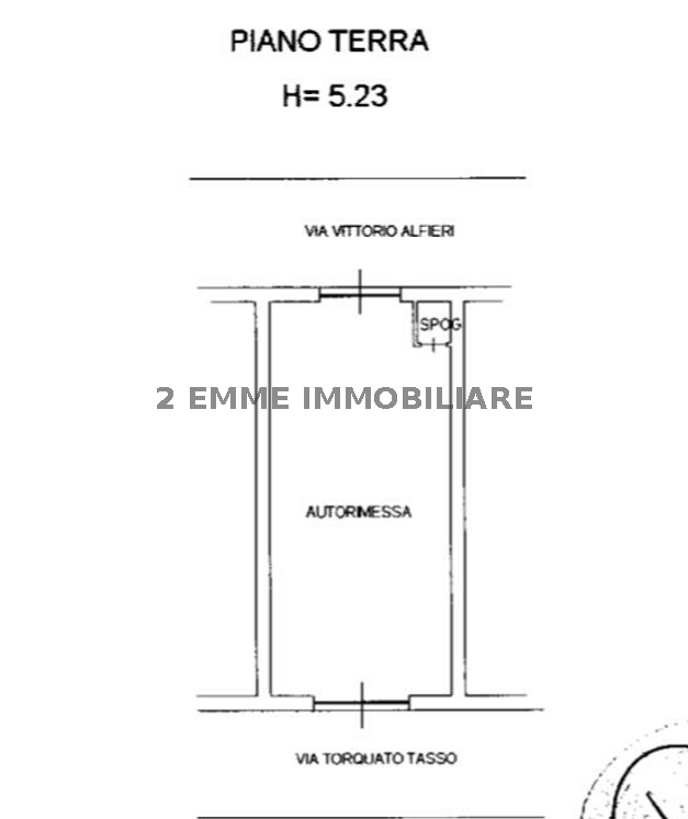 Ampip garage di 57 mq con doppio ingresso, sia da via Torquato Tasso che da via Vittorio Alfieri.
