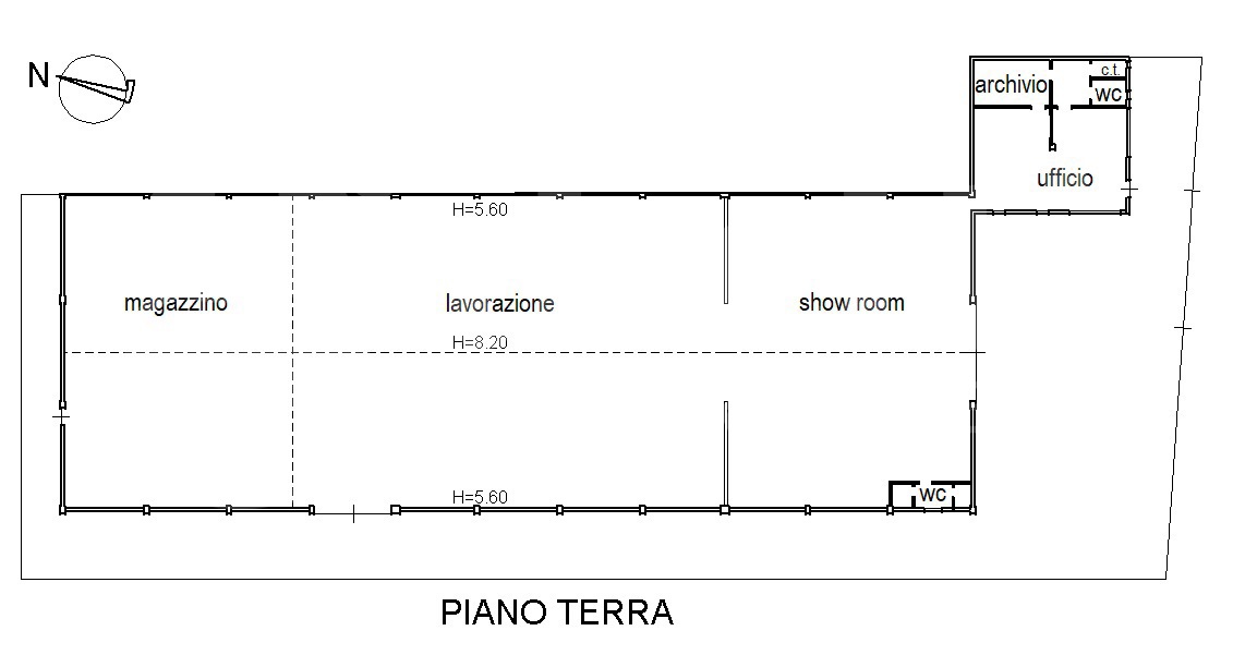 L'altezza interna e la conformazione del capannone lo rendono adatto a diverse esigenze.
