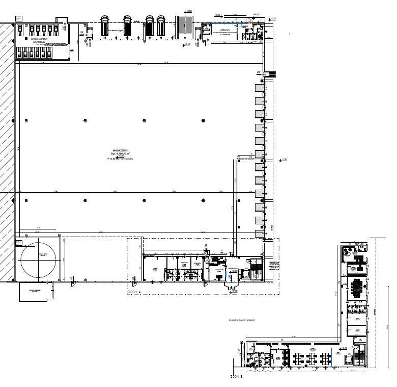Il magazzino di circa 4.550 mq sar dotato dei locali di gestione delle attivit logistiche quali area carica muletti, servizi, spogliatoi, locale mensa, ufficio magazzino, per complessivi circa 200 mq e uffici amministrativi gestionali commerciali per complessivi 550 mq disposti su 2 livelli dotati dei principali impianti.