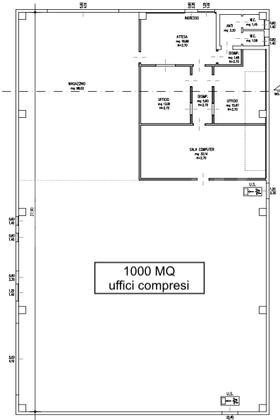 capannone di mq 1000, alto 8 metri, con predisposizione di carro ponte, con uffici.