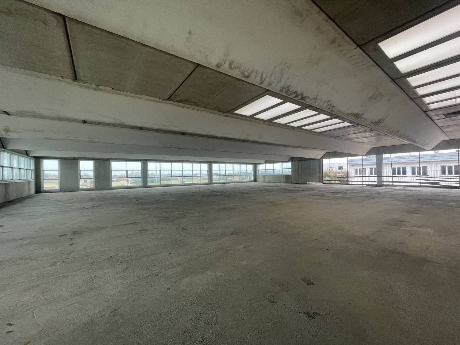 Il fabbricato è situato al centro del lotto e composto da seminterrato con 42 posti auto coperti, ampio vano al piano terra con vetrate, primo piano senza colonne con affaccio esterno vetrato lungo tutto il fabbricato e 66 posti auto scoperti distribuiti su tutto il lotto recintato.