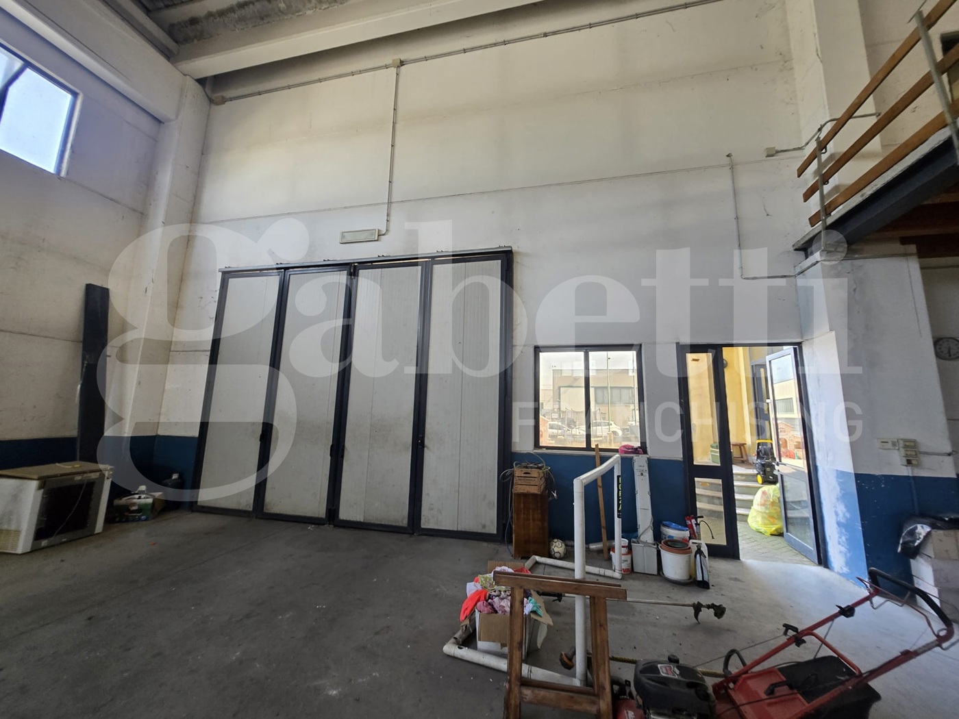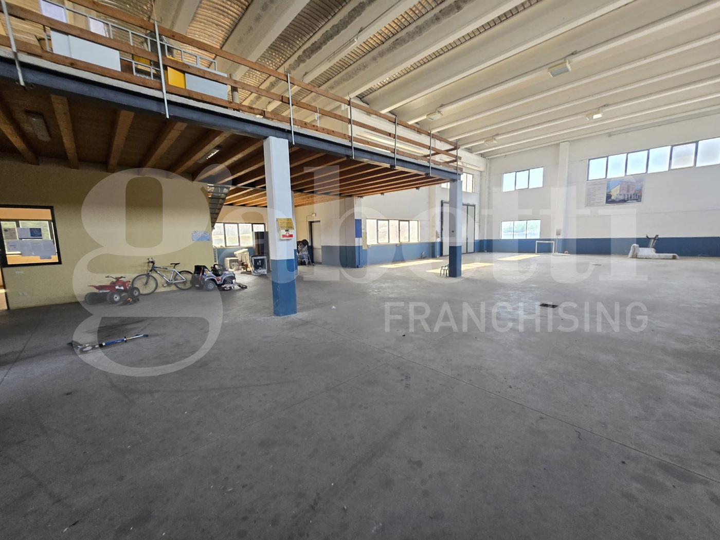 Zona di 80 mq adibita ad uffici con servizio e soppalco di 200 mq al grezzo da utilizzare per ulteriore spazio uffici.