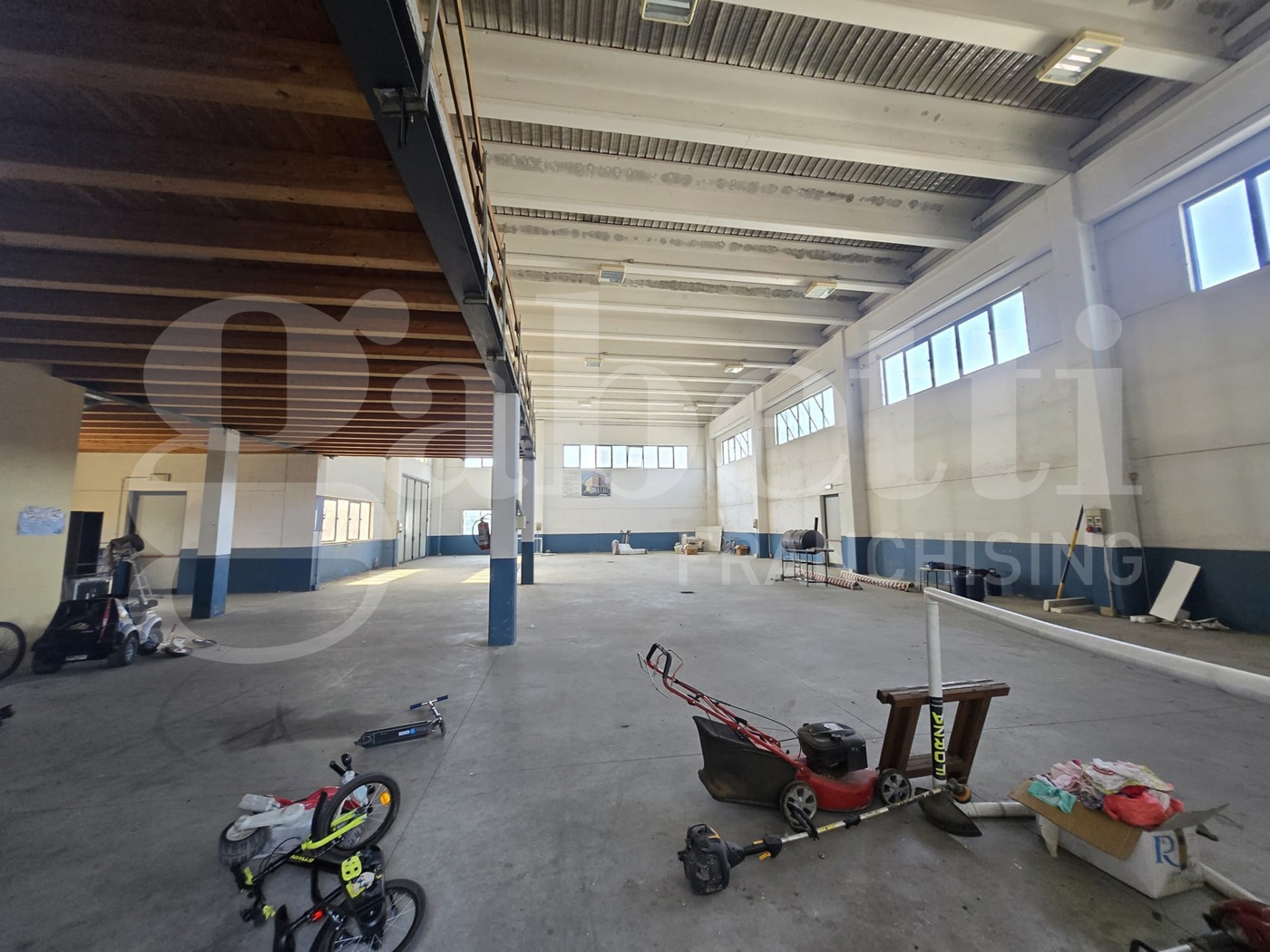 Zona di 80 mq adibita ad uffici con servizio e soppalco di 200 mq al grezzo da utilizzare per ulteriore spazio uffici.