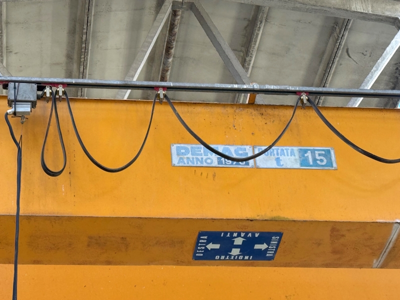 Capannone industriale con carroponti diviso in due unità. Entrambe le unità hanno un'altezza di 8mt. La prima unità è di 7000mq con 2 carroponti rispettivamente da 10t e 15t della ditta DEMAG.