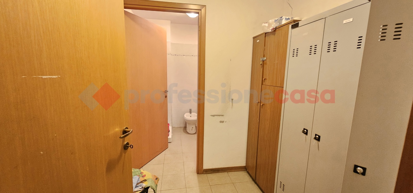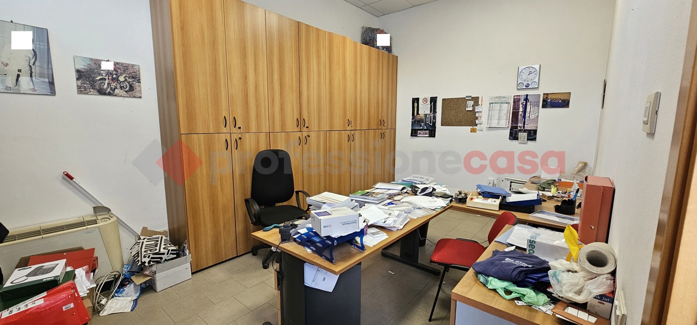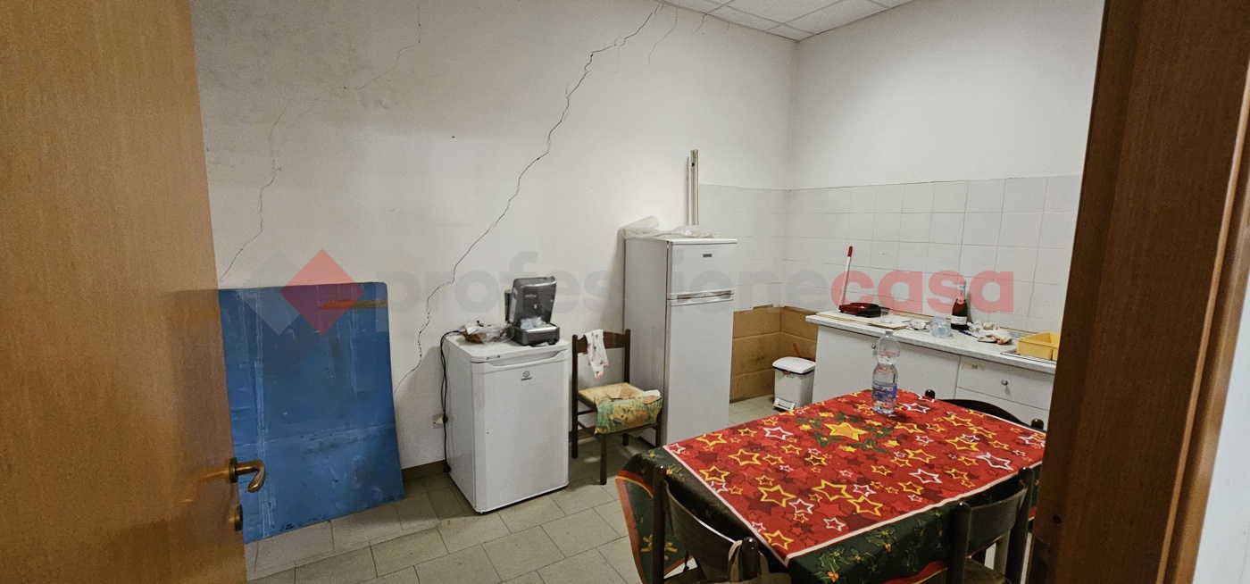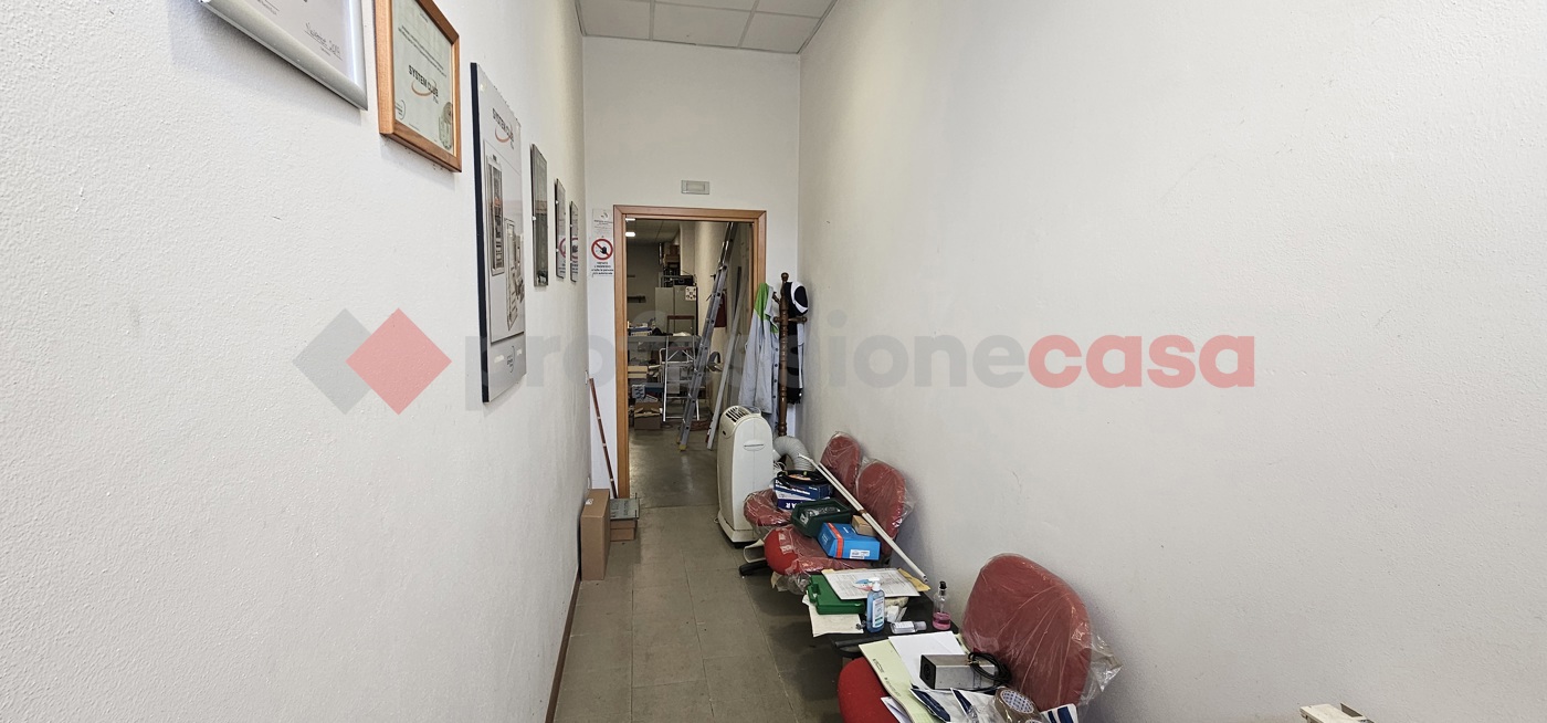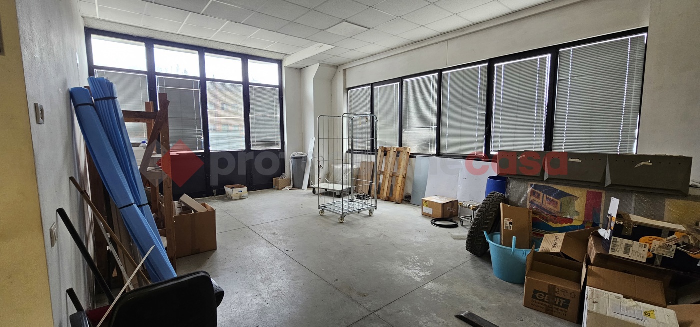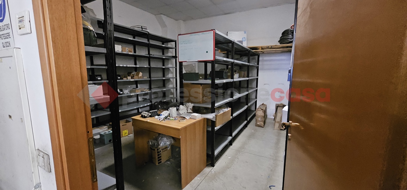 Capannone composto da due ingressi di cui uno carrabile e altro pedonale, corridoio, ufficio, vano grande principale, due vani secondori e antibagno e bagno.