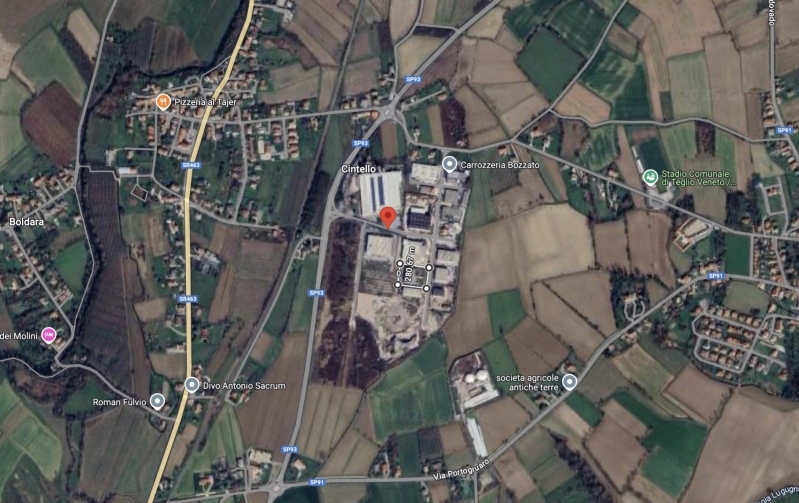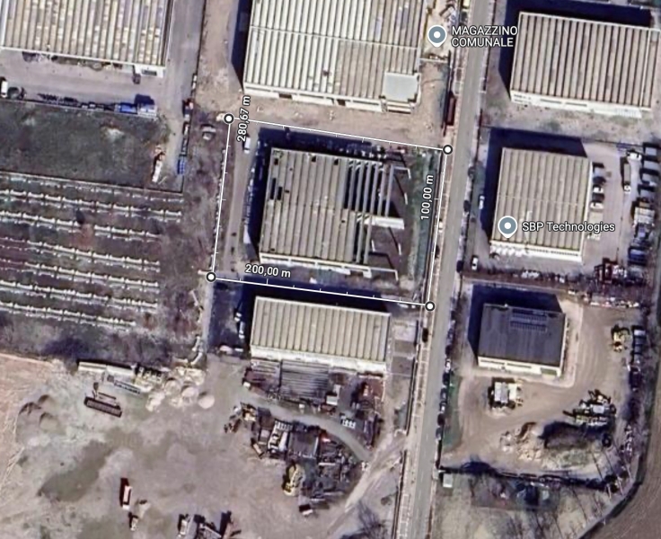 Sottotrave di 8mt con 2 portoni a libro ( 4mt x 4mt ), inserito su lotto di 4800mq completamente recintato con doppio accesso carraio.