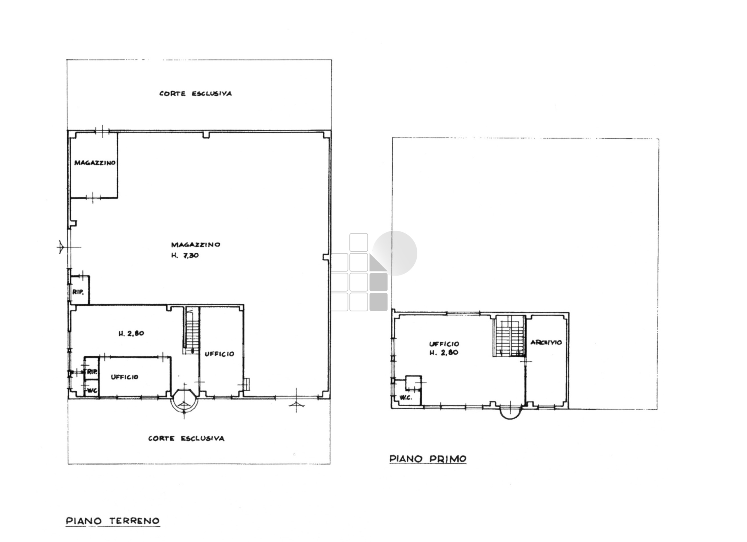 La zona di ricezione ed uffici propone quattro vani che permettono facilmente la suddivisione degli spazi per reparti o magazzino.
