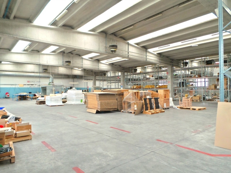 La zona produttiva è riscaldata, dotata di impianti a norma, certificato CPI per rischio incendio massimo, anello antincendio, zona ricarica muletti e compressore.