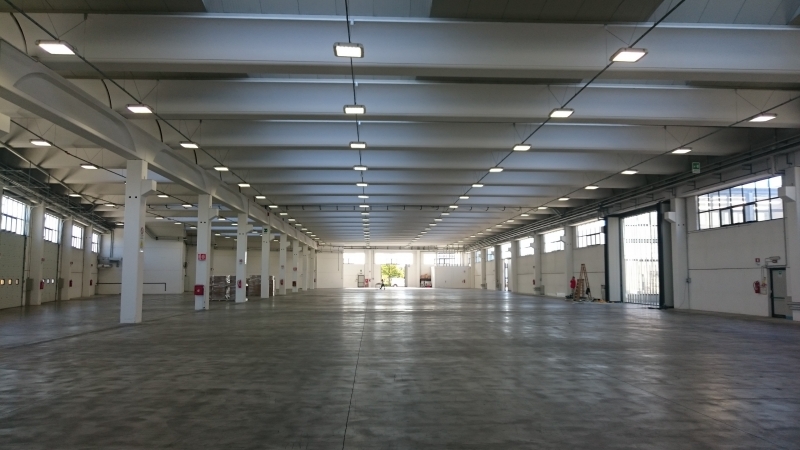 La superficie destinata a lavorazione/deposito, pari a circa 4.500 mq, è dotata di: Riscaldamento a pavimento Predisposizione per carroponte Anello antincendio 4 baie di carico 8 portoni di accesso La zona uffici, di circa 1.000 mq, è di rappresentanza, disposta su due livelli e servita da ascensore.
