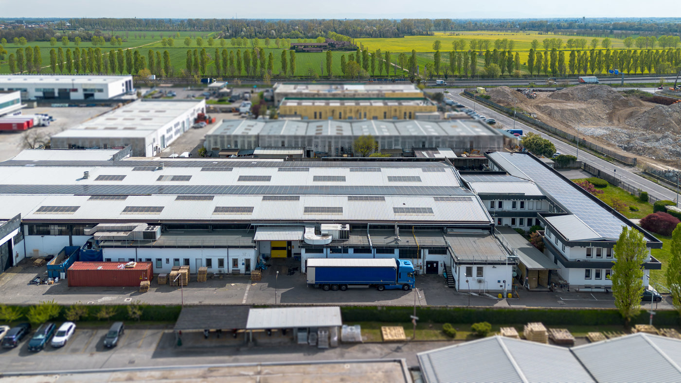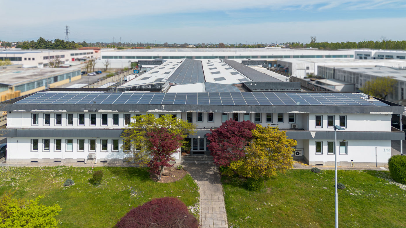 L'edificio composto da circa 4.500 mq di capannone, suddiviso in zona produttiva e magazzino con 5 accessi carrai su cortile privato, oltre palazzina uffici di complessivi 1.300 mq (uffici) + 600 mq (cantinato servito da accesso carrale), climatizzati, con reception, sale riunioni, locali tecnici, giardino di rappresentanza.
