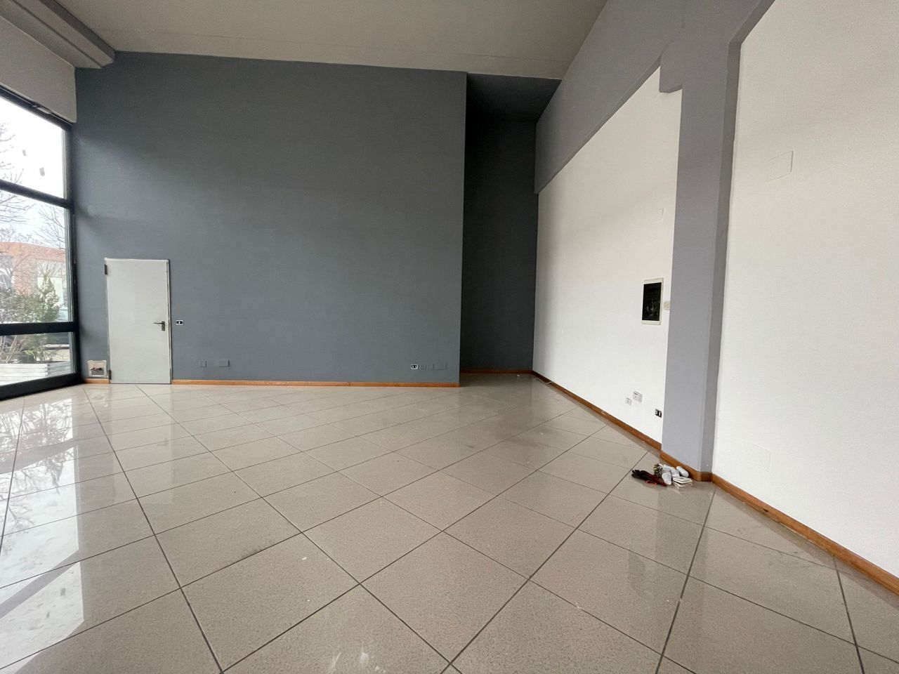 Distribuzione degli spazi: Area Espositiva (Fronte): Locale di 105 mq ideale come showroom o mostra campionaria, servito da bagno con antibagno.