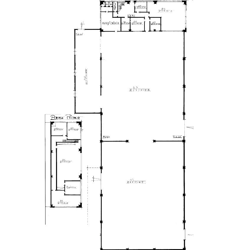 Fabbricato costruito per esigenze industriali e relativa area esterna di pertinenza formato da una porzione ad uso uffici e servizi disposta su due piani fuori terra, con superficie lorda pari a 412 mq, oltre locali ad uso officina e magazzino posti su di un unico piano, collegati tra loro e realizzati in struttura prefabbricata in calcestruzzo e lamiera, di complessivi ulteriori 1.597 mq, con area esterna pavimentata di 3.698 mq delimitata da recinzione.