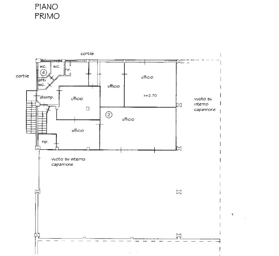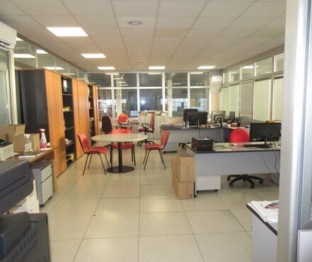 Capannone industriale entrostante a terreno di pertinenza della superficie reale di mq. 2050 posto su due piani avente superficie complessiva lorda di mq. 1220 composto: al primo piano soppalcato: cinque locali, utilizzati come uffici, divisi da tramezzi mobili, oltre servizio igienico; al piano terreno officina di circa mq. 900, spogliatoio e refettorio, quattro locali utilizzati in parte come magazzini ed in parte come uffici operativi ed un servizio igienico.