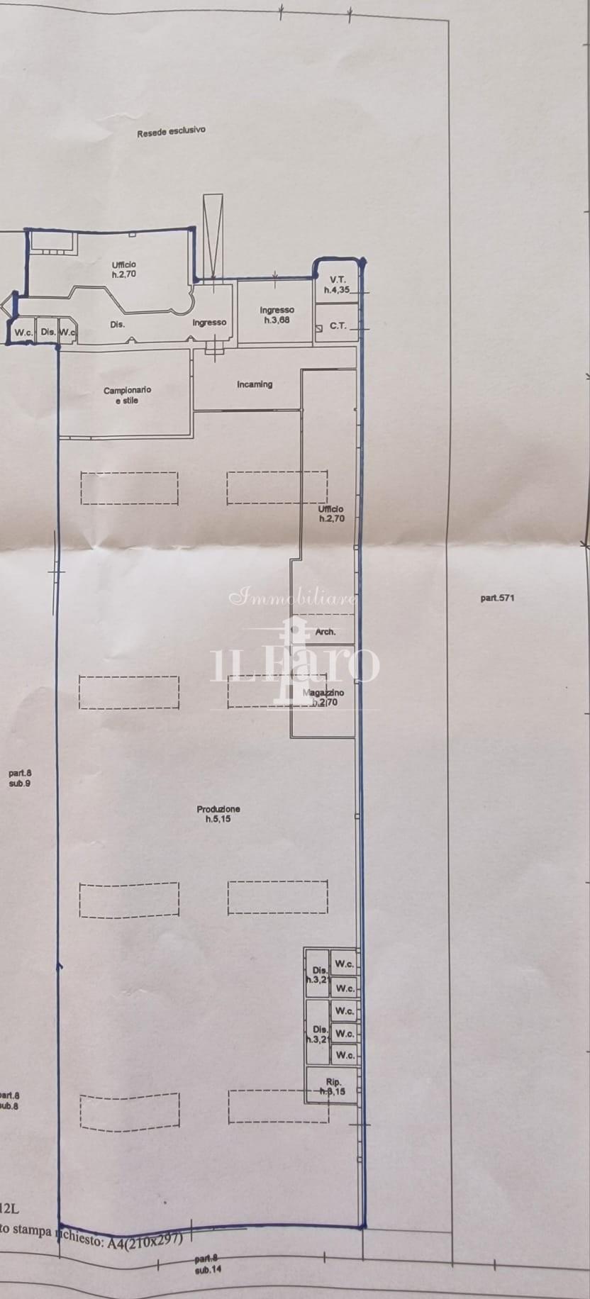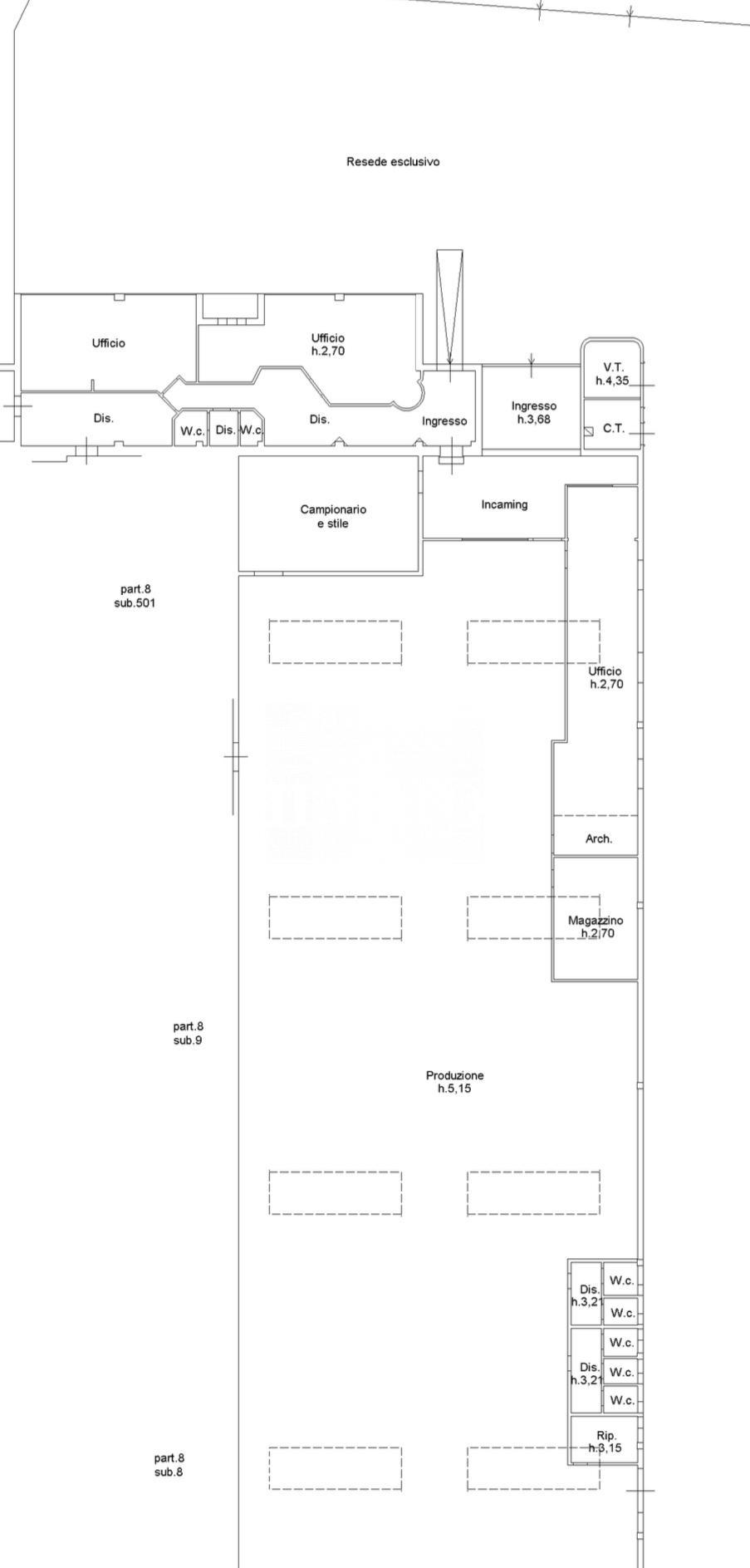 L'immobile ha una estensione di circa 1000 mq dedicati solo al produttivo mentre la restante metratura è distribuita tra tre uffici con aria condizionata e riscaldamento, show room, 5 bagni con antibagno uscite di sicurezza e antincendio.