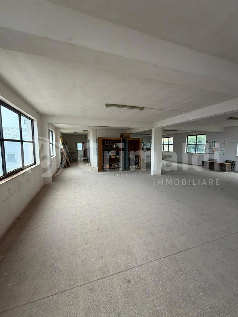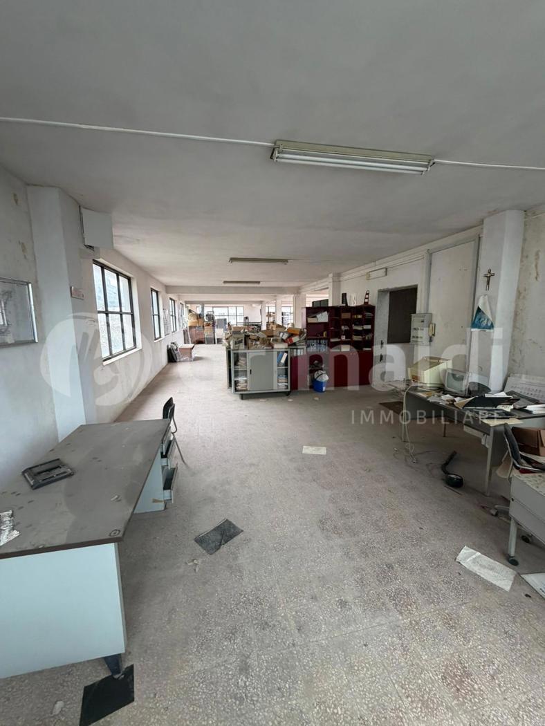 Composto da piano cantinato, piano terra, piano 1° e piano 2°. Piano seminterrato: tetti alti m 3,80 mq 624 c.a. con accesso da scivolo e scala interna del piano terra, composto da unico ambiente, spogliatoio e 2 wc; Piano terra: tetti alti m 3,80, mq 324 c.a. composto da unico ambiente, locale deposito, da scala si accede allS/1 ed al piano 1°; Piano 1°: tetti alti m 2,80, mq 324 c.a. composto da unico ambiente con wc, da scala interna si accede al piano 2°; Piano 2°: tetti alti 2,80, mq 162 c.a., composto da uffici direzionali, altre terrazze di mq 162 c.a. Limmobile da ristrutturare.
