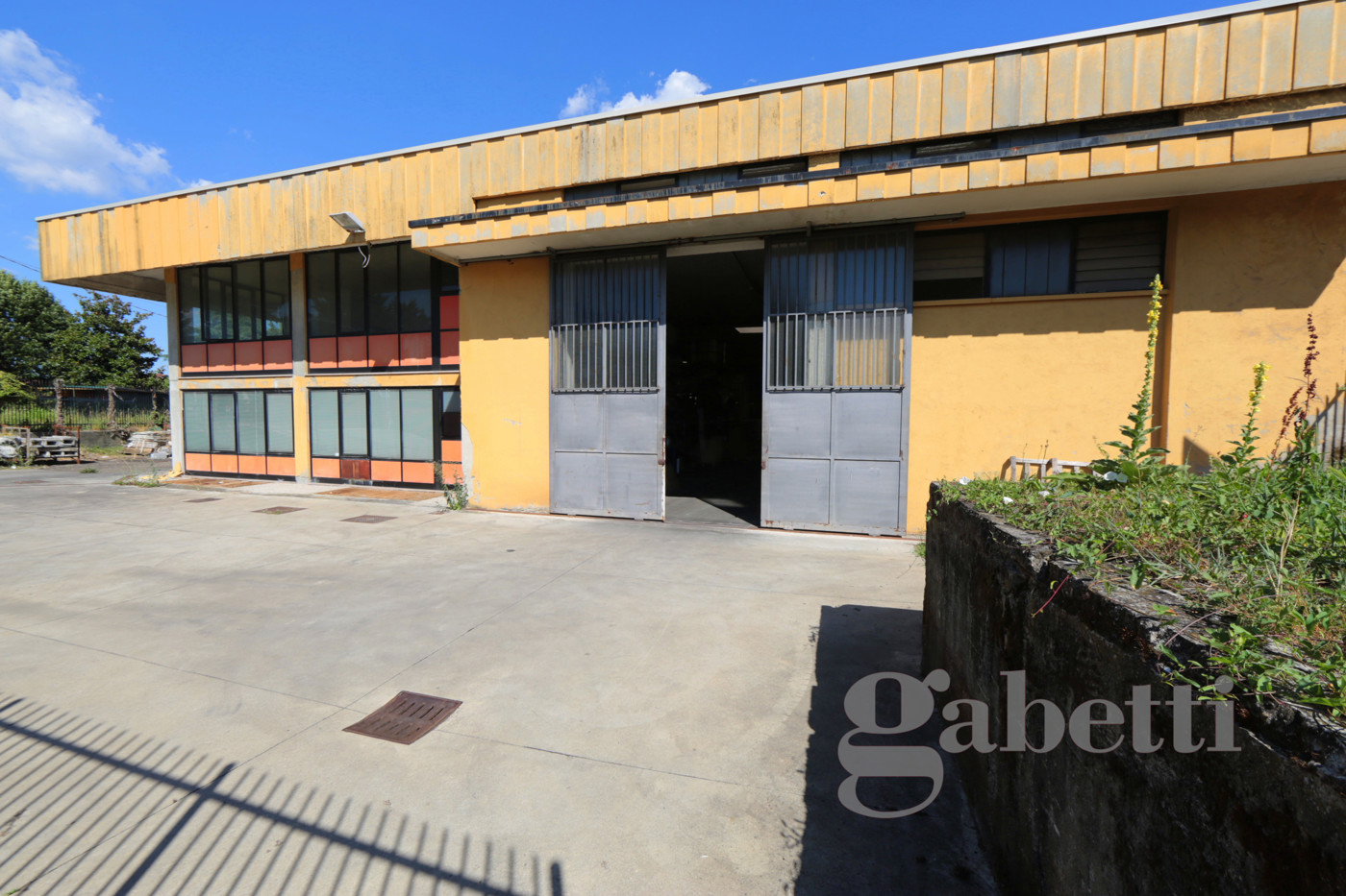 Sul lato nord si trova una tettoia pari ad una superficie di 90 mq. Il capannone circondato su due lati da piazzali di manovra e terreno per un superficie totale di 1.125,22 mq. Il fabbricato presenta una struttura a telaio di travi e pilasti con tamponamento a pannelli di cemento, tetto stato recentemente ristrutturato.