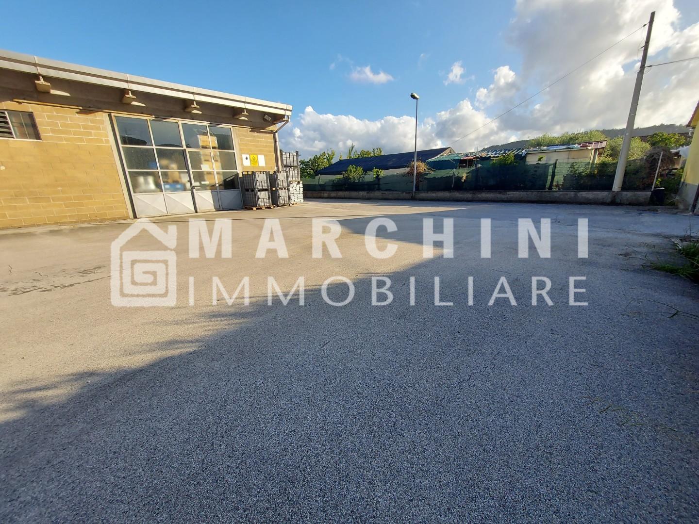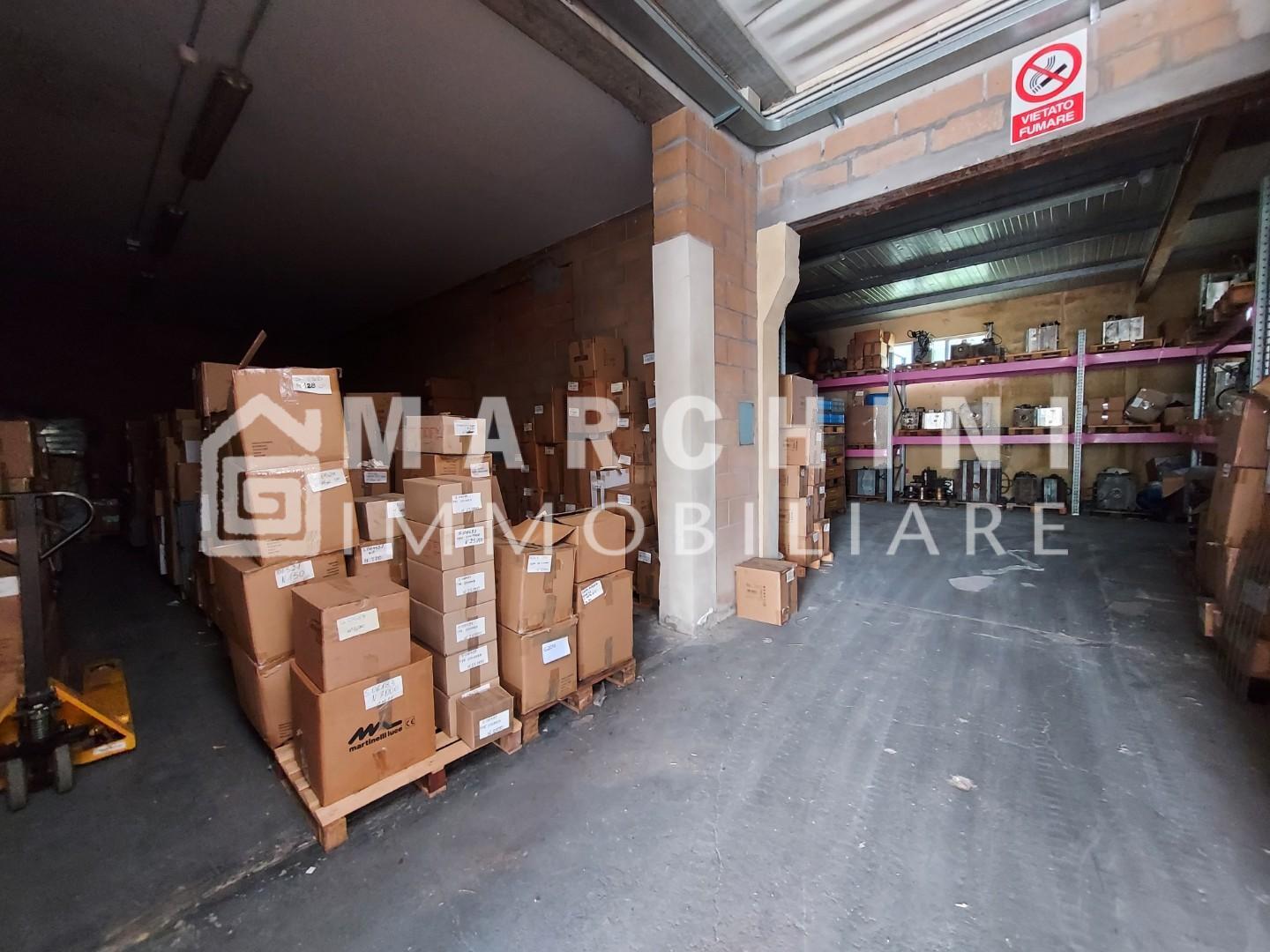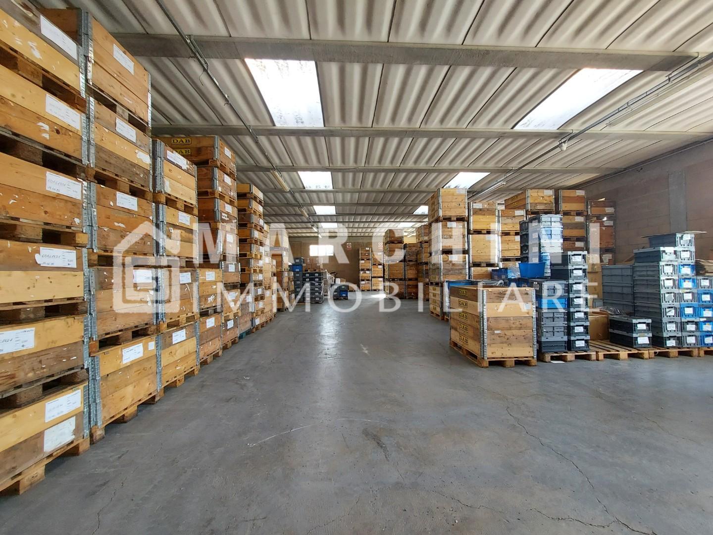 Il capannone, attualmente locato come magazzino, si compone di un ampio vano collegato ad altri tre vani, due bagni con antibagno e ampia tettoia per carico e scarico merci.