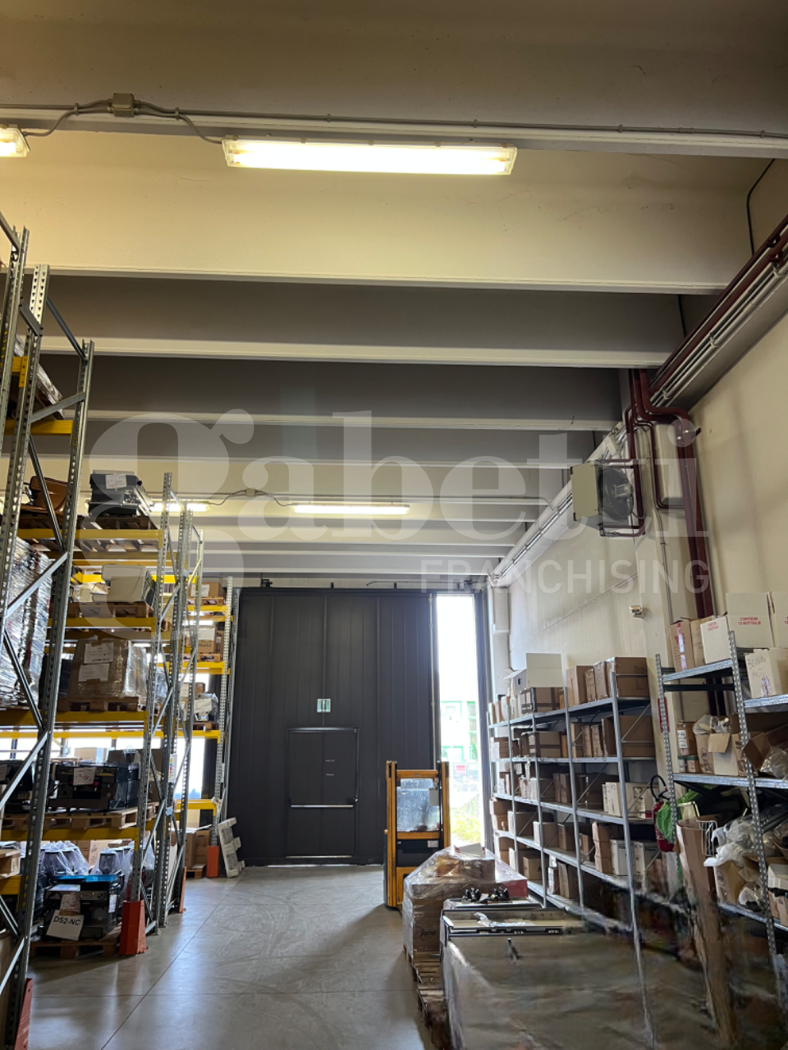 Capannone di 700 mq altezza interna di 5,00 metri, di cui 110 mq di uffici, un servizio, centrale termica, 2 portoni carico, piazzale privato e condominiale, parcheggio privato, doppio accesso carraio e doppio accesso carico scarico.