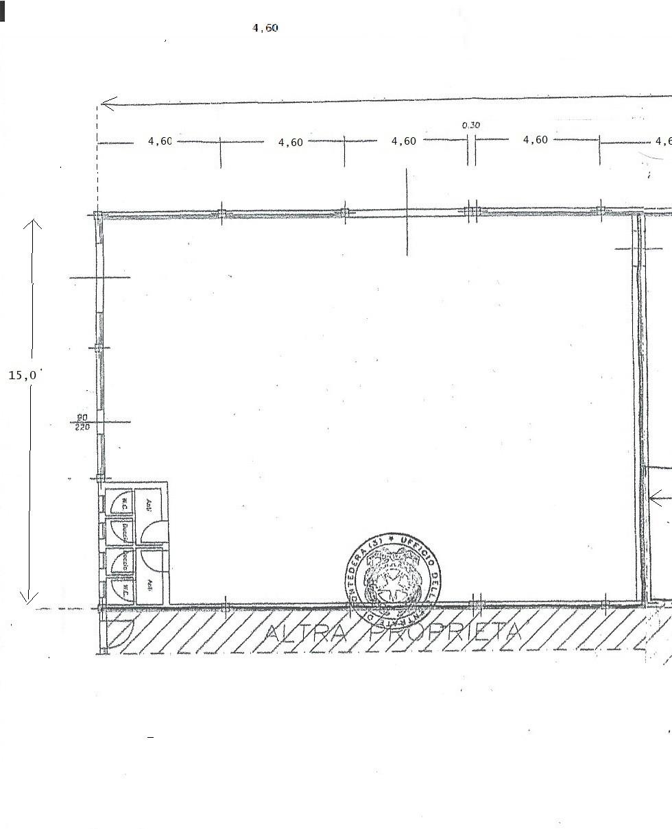 Due ingressi, uno laterale con grande portellone per carico/scarico merci, bagni a norma.