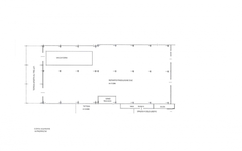 La struttura presenta un'altezza totale di 7 metri e altezza utile sottotrave di 5,20 metri con prediposizione linee per carroponte già presenti, risultando adatta per attività produttive, industriali e logistiche, inclusa movimentazione mezzi pesanti.