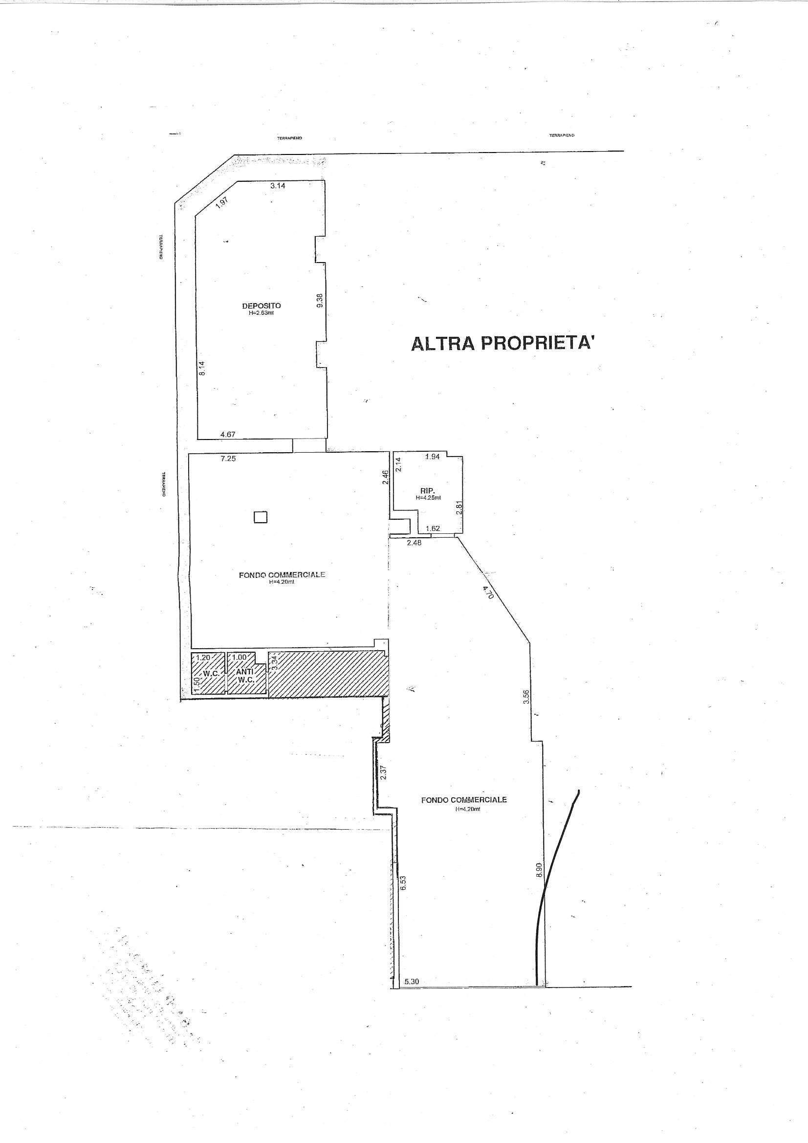 Su strada di transito di facile accesso e visibilità vicino ai servizi, vendesi fondo commerciale di circa 195 mq, altezza 4.20 mt con ampio e alto accesso carrabile d'entrata e con antistanti parcheggi in uso per l'attività da svolgere.