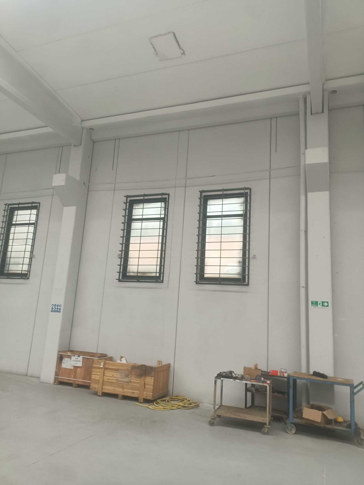 Il fabbricato è costituito da una ampio capannone dell'altezza di quasi 7 metri, all'interno del quale sono state ricavate al piano terra una zona di circa 90 mq con reception e uffici, un'area spogliatoi con bagni e doccia ed ulteriori locali ad uso magazzino.