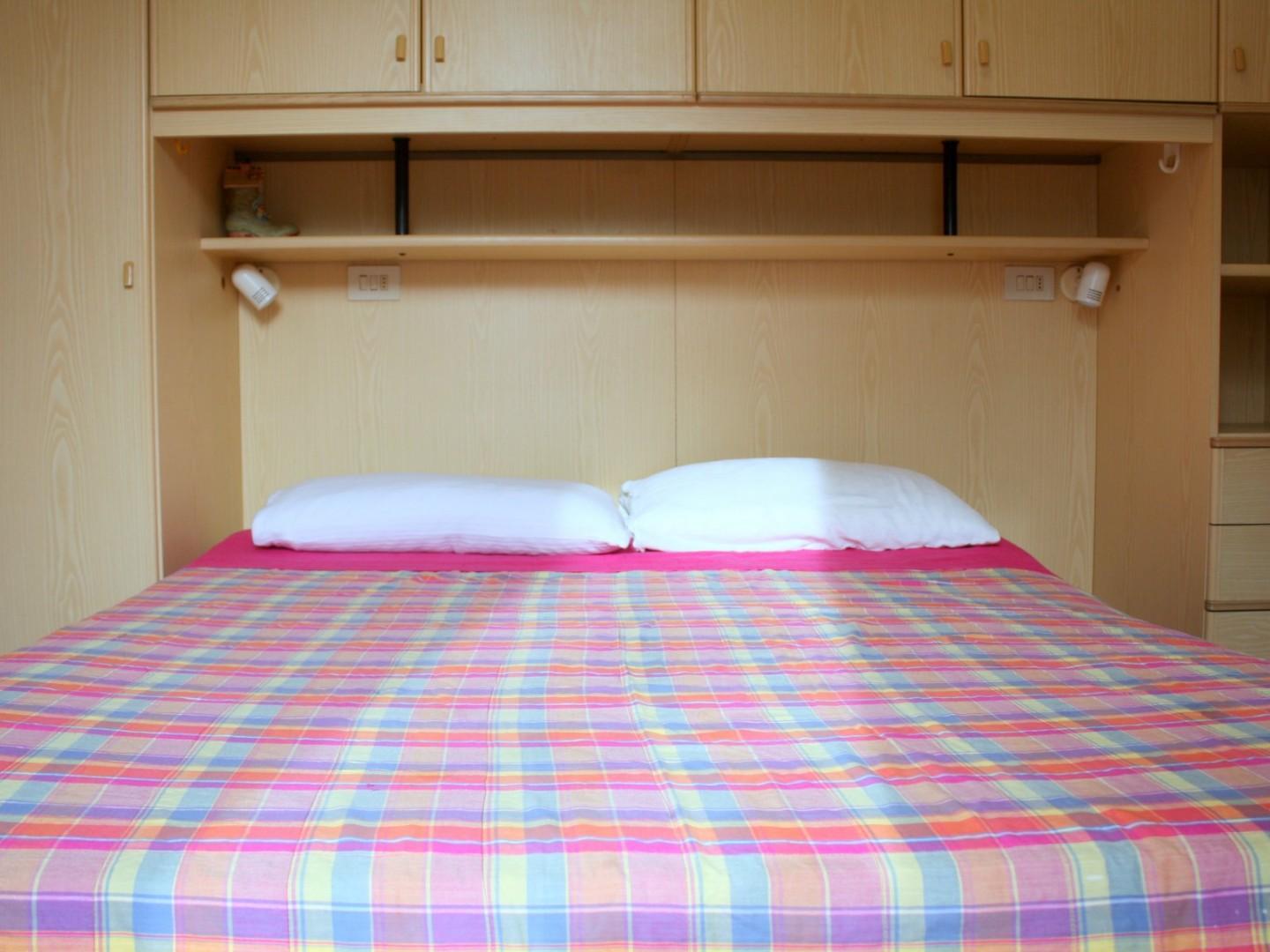 L'ingresso avviene nella zona giorno organizzata in angolo cottura, sala pranzo e zona TV. Questo ambiente dispone di una poltrona letto (1 pax). La camera è matrimoniale e può ospitare due persone.