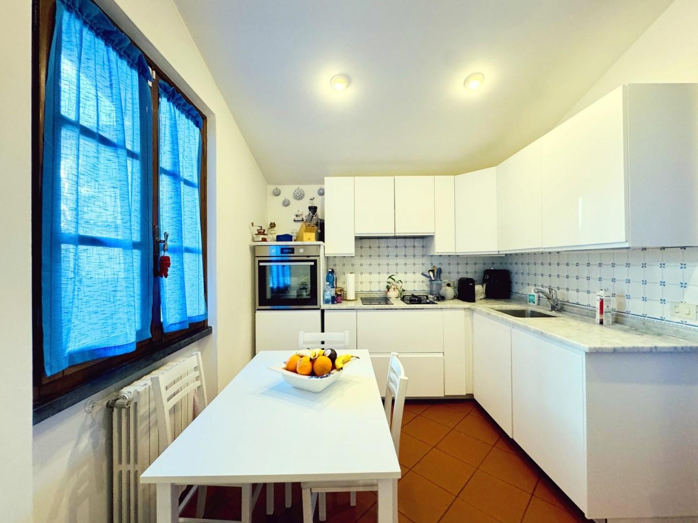 Percorrendo il corridoio si raggiunge la cucina abitabile servita da uno spazio esterno coperto adibito ad uso lavanderia-servizi.
