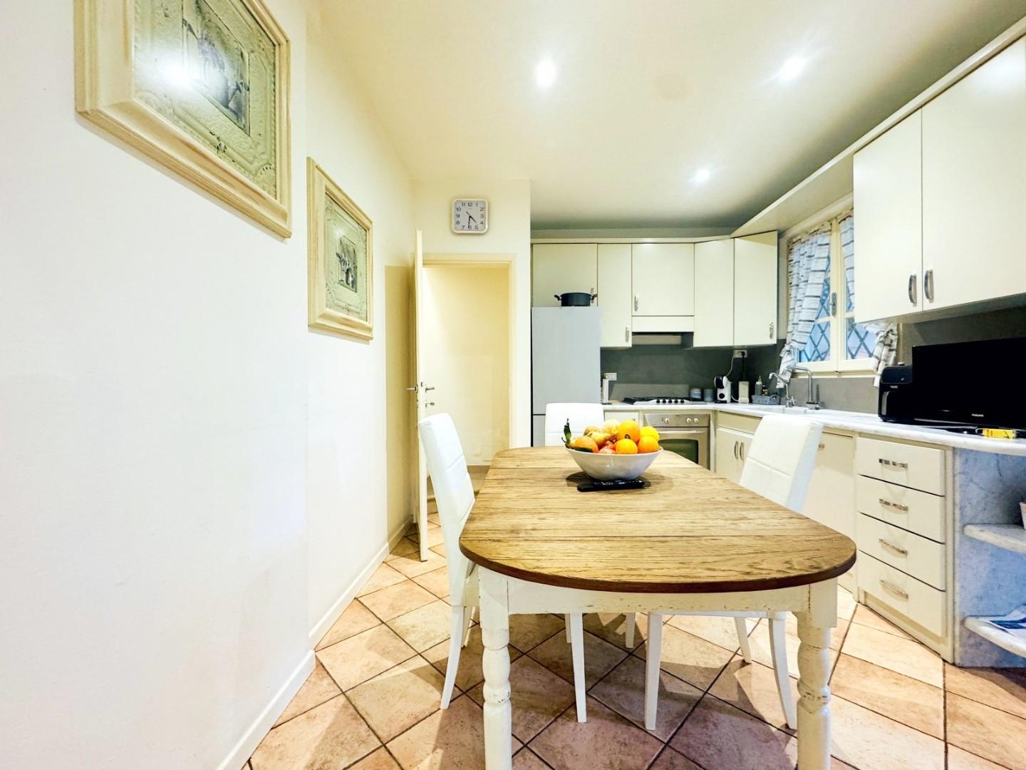 La cucina è abitabile e funzionale, dotata di accesso secondario diretto alla resede esterna, ideale per pranzi e cene allaperto in totale comodità. Sempre al piano terra trovano spazio una camera matrimoniale con bagno e una seconda camera singola anchessa servita da bagno, soluzione perfetta per ospiti e personale di servizio.