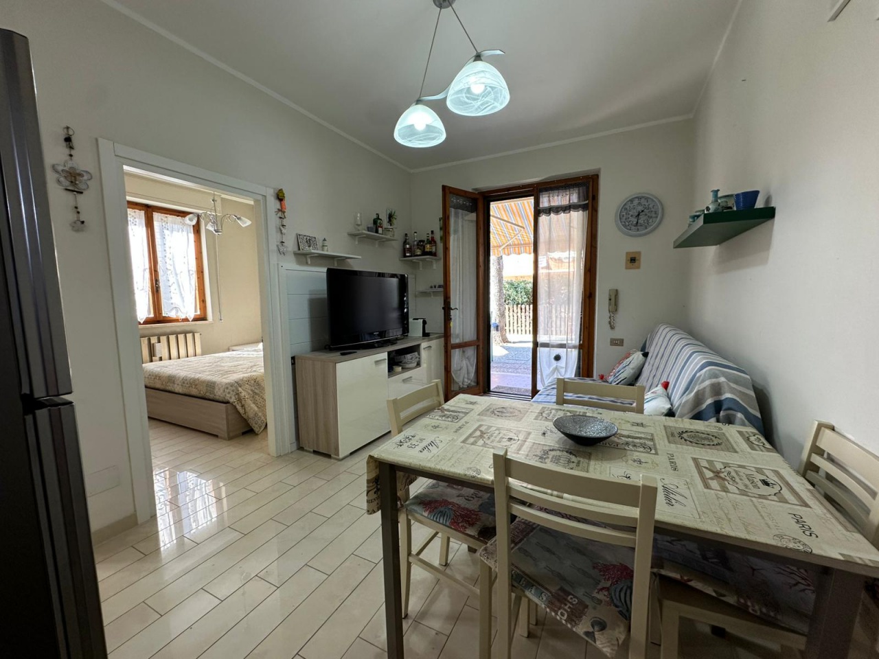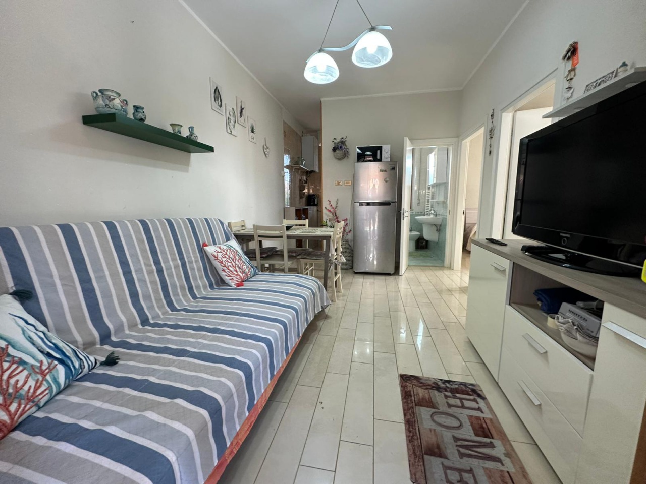 Trilocale composto da soggiorno con angolo cottura e divano letto, due camere matrimoniali e bagno con box doccia.