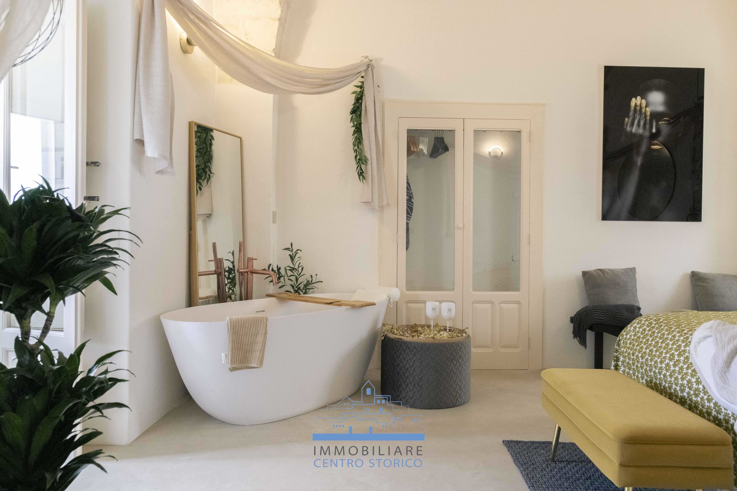 Con i suoi due ampi ambienti, ti accoglie con una zona living, dotata di un comodo divano letto per momenti di relax, e una camera da letto che trasuda eleganza, arricchita da una vasca di design per un tocco di lusso.