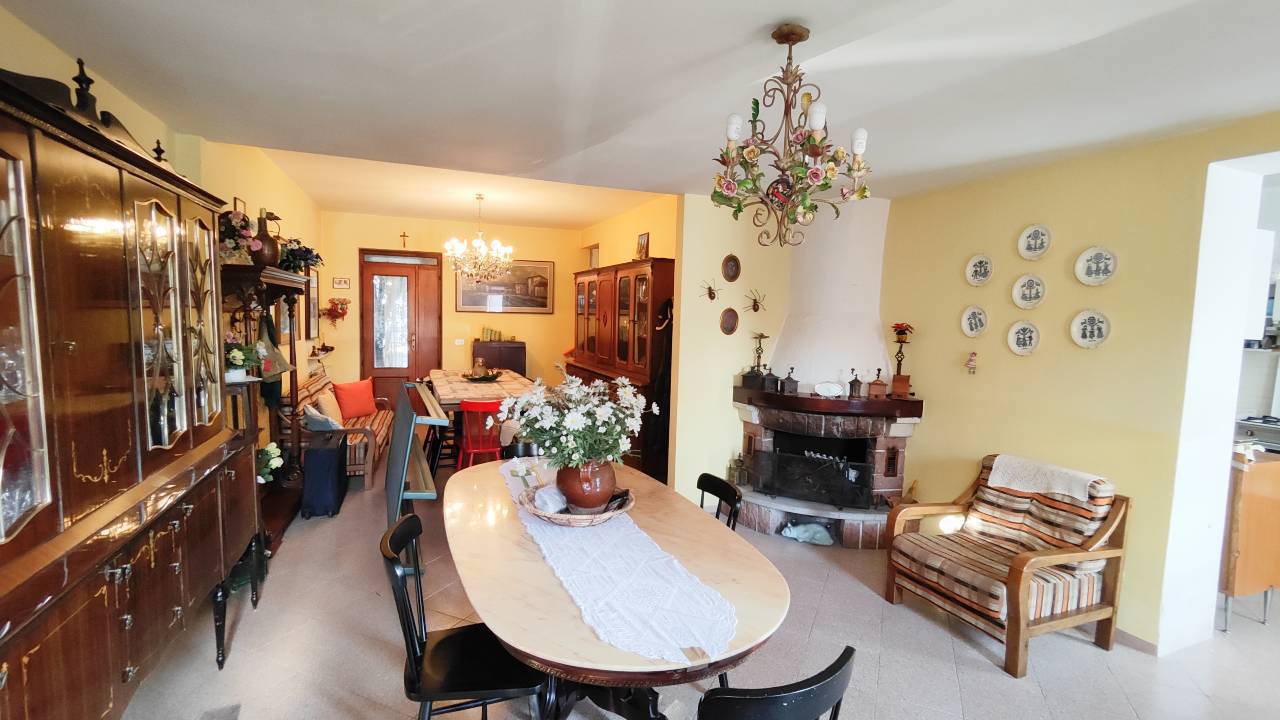 La casa, libera su due lati, presenta un doppio ingresso e si sviluppa su due livelli: al piano terra (privo di barriere architettoniche) troviamo il soggiorno ampio e luminoso con camino, la cucina abitabile ed un primo bagno.