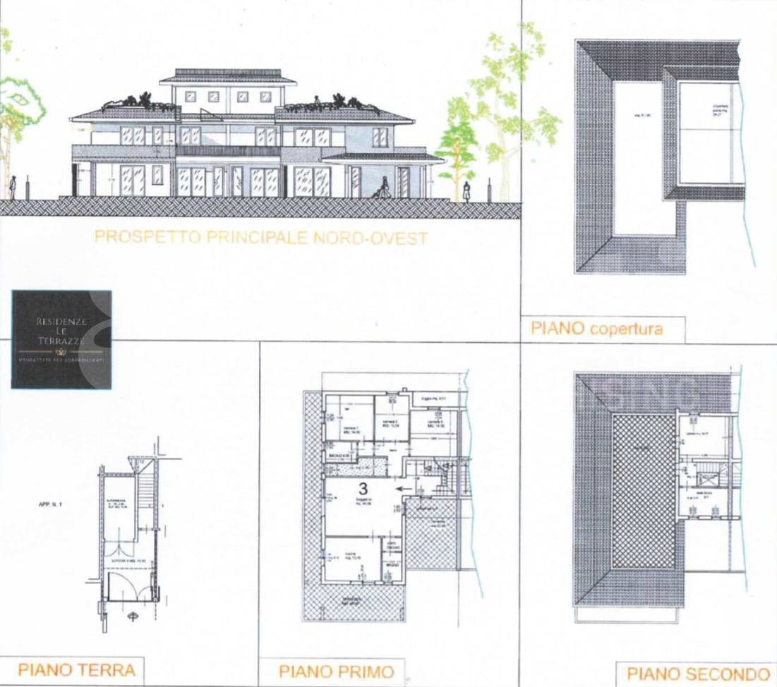 Le due porzioni di quadrifamiliare saranno circondate e costituite al piano terra da garage con loggia e l' intero appartamento si svilupper al primo piano composto da ampio salone , tramite porta finestra, con accesso diretto alle terrazze abitabili , luminosa cucina abitabile, anch' essa con affaccio sulla terrazza abitabile , tre spaziose camere , ripostiglio e due bagni , uno a servizio della zona notte ed uno della zona giorno.