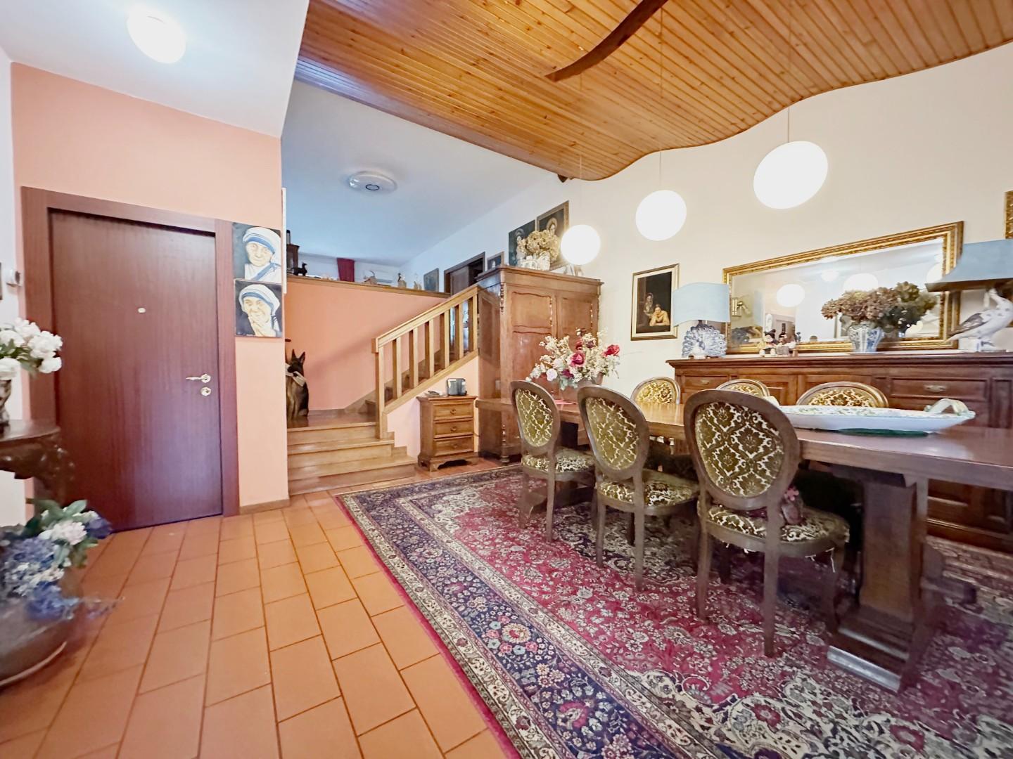 Lingresso principale, attraverso resede esclusiva, introduce nella zona giorno, composta da una sala da pranzo accogliente, una cucina abitabile di generose dimensioni e laccesso alla taverna con camino, ideale per momenti conviviali.
