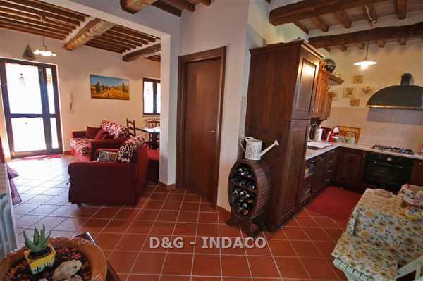 Le ottime rifiniture, come le travi in legno di castagno e le mezzane in cotto, conferiscono un tocco di eleganza rustica all'intera abitazione.