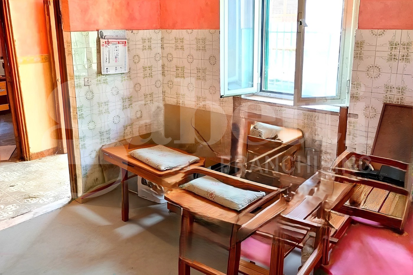 L'abitazione composta da ingresso, soggiorno, cucina abitabile, due camere da letto ed un bagno, mentre il manufatto adiacente potrebbe essere demolito per ricavare un giardino con posto auto a servizio dell'abitazione.