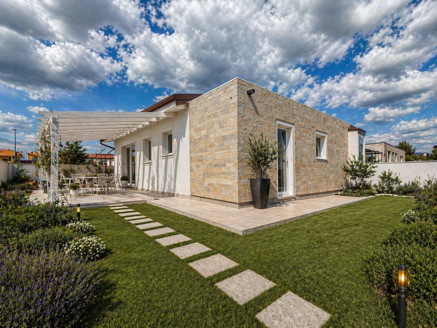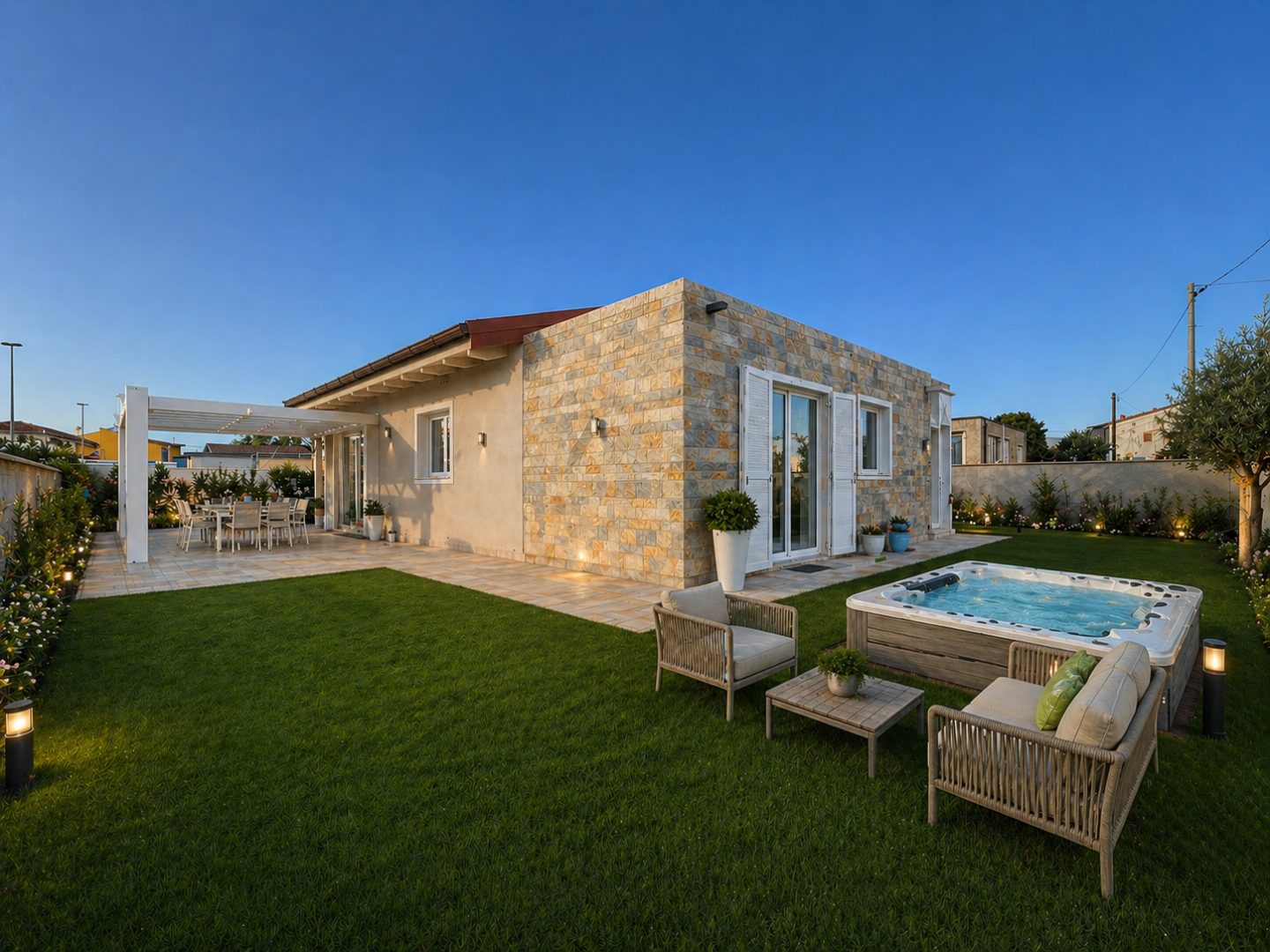 Le caratteristiche esterne, facilmente distinguibili, per lutilizzo di pietra di rivestimento che danno forma e corpo a queste VILLE, realizzate una diversa dallaltra.